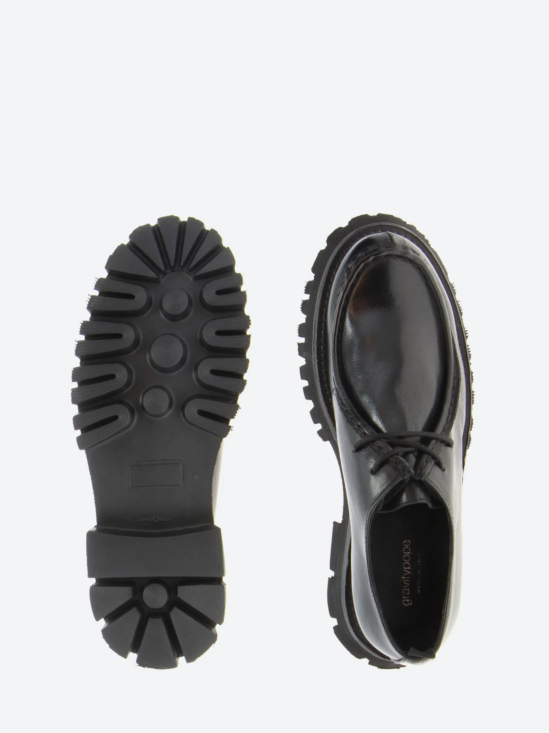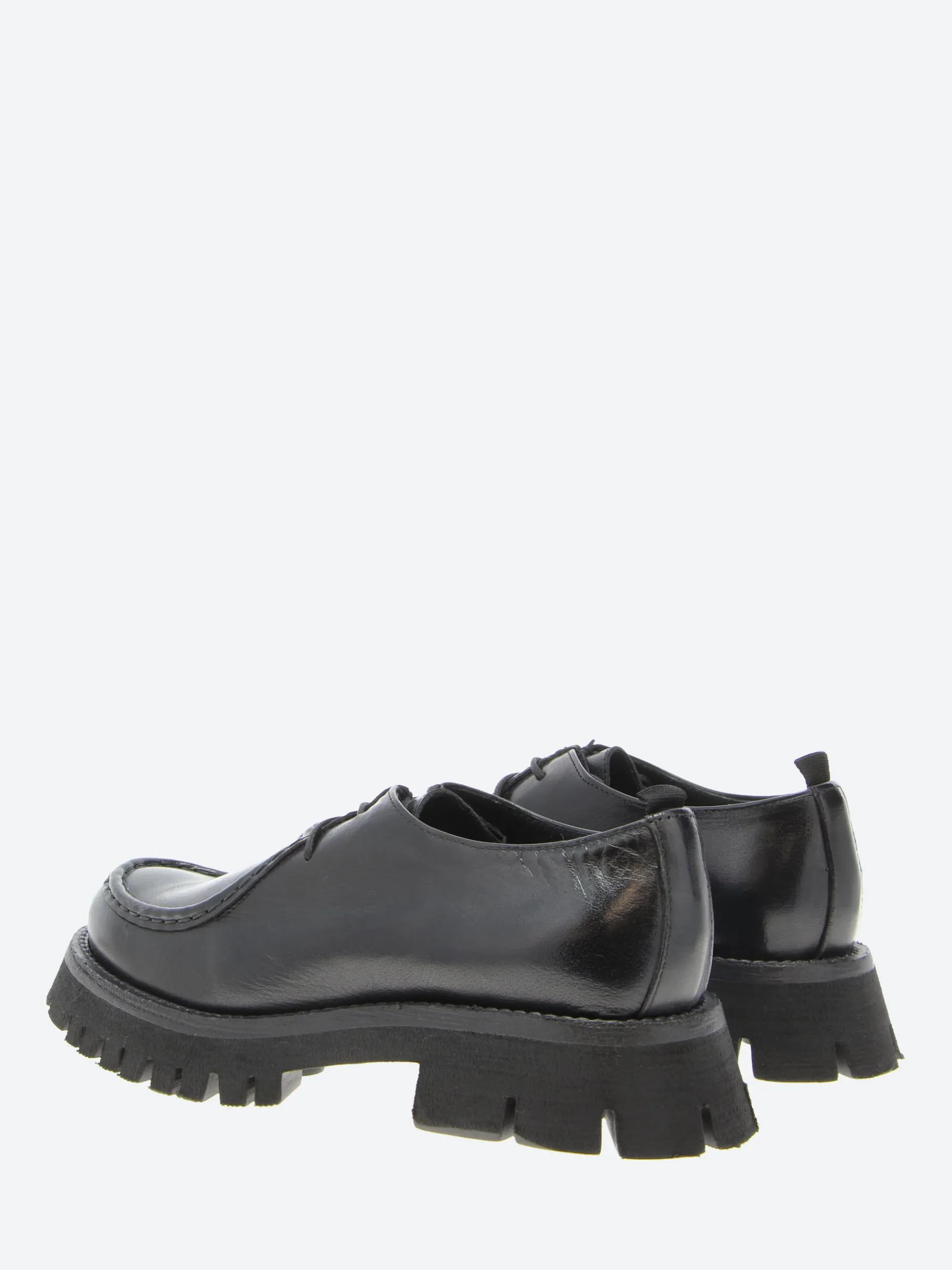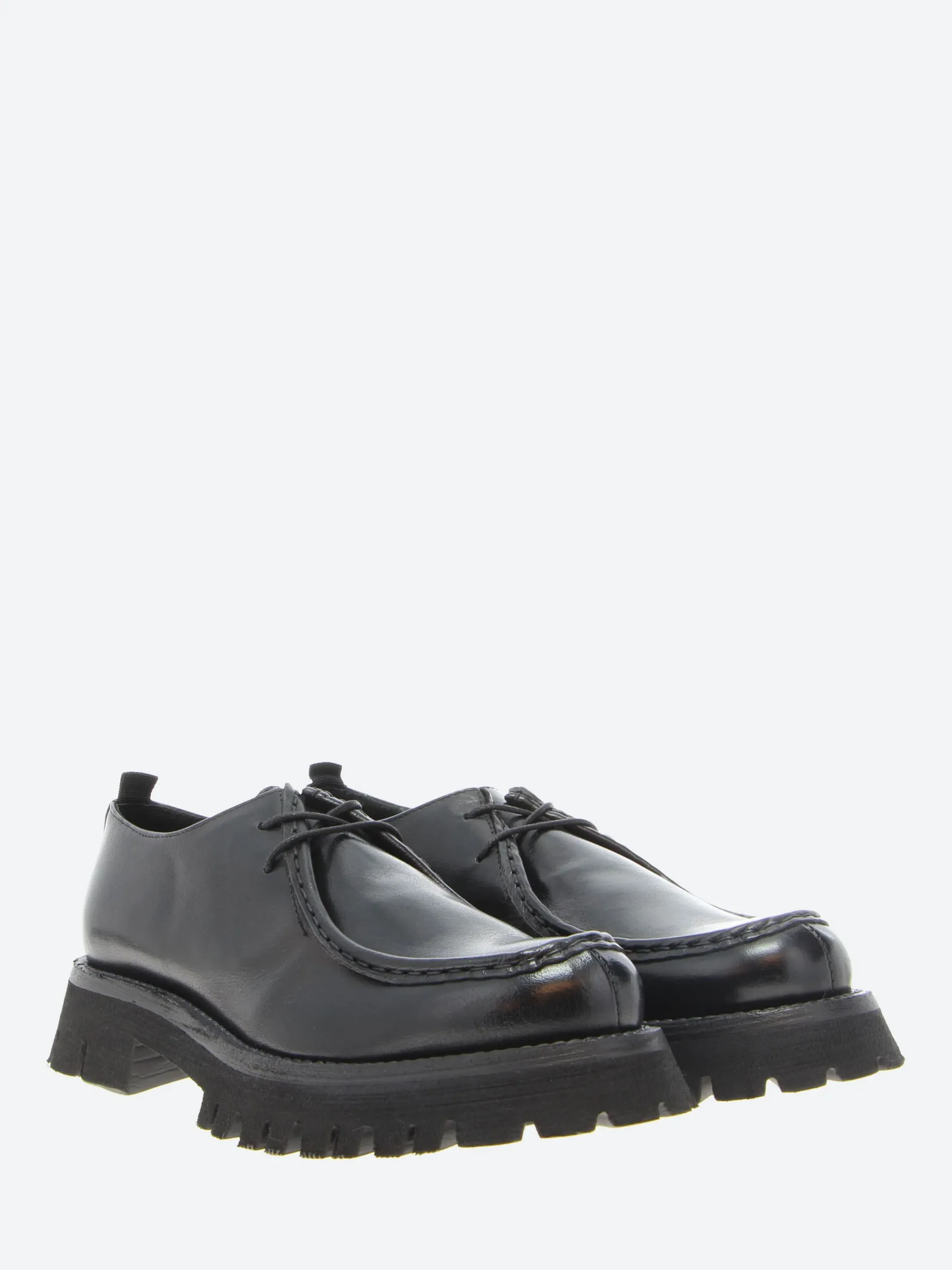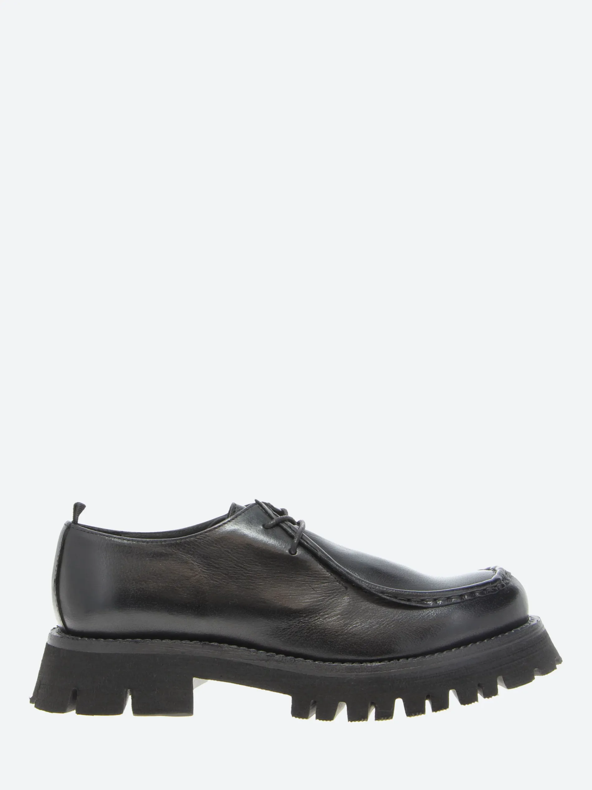 gravitypope Raida with a chunky lug sole. This moc toe lace-up in a smooth leather upper is a timeless piece to be worn on any occasion.