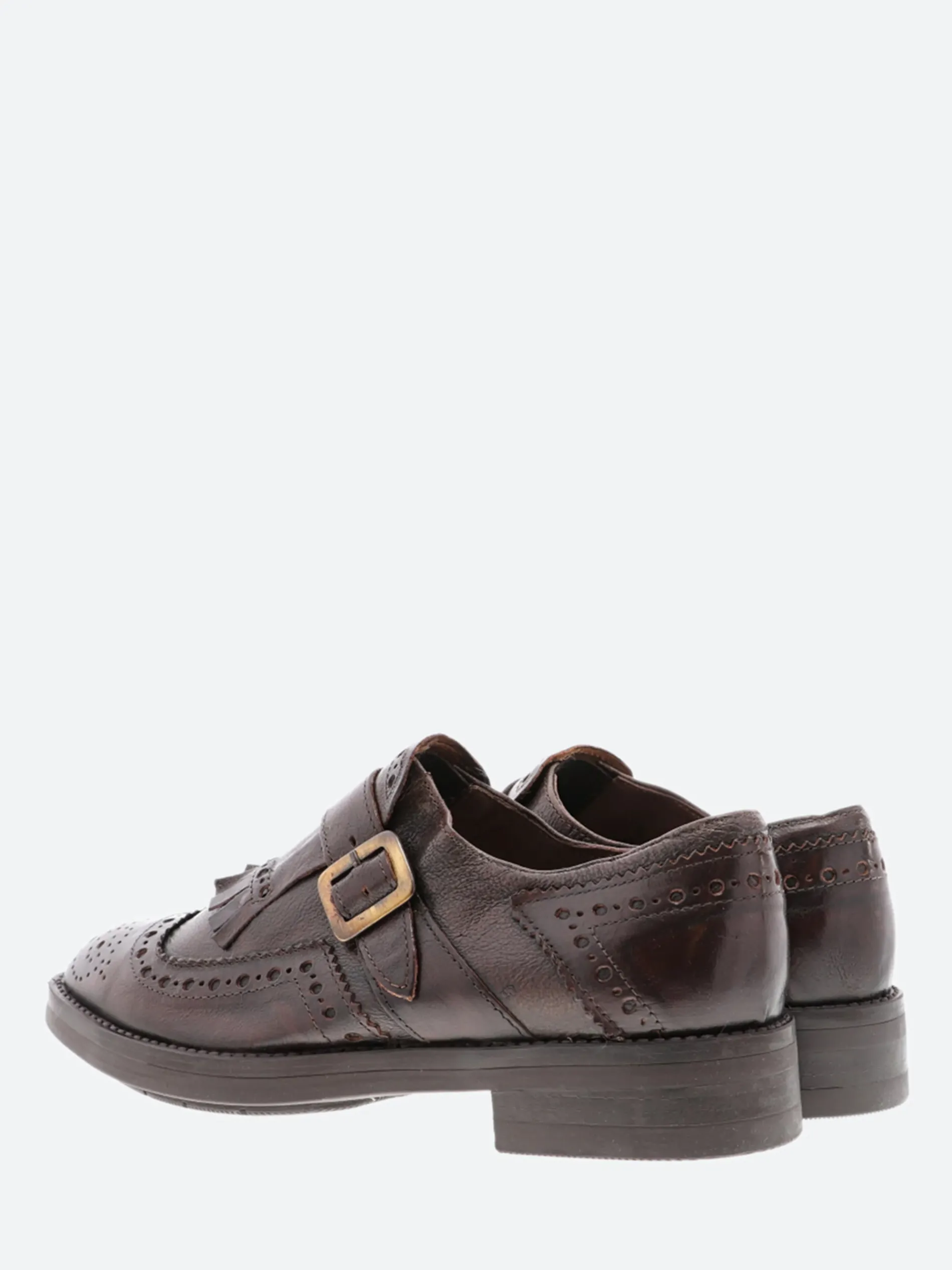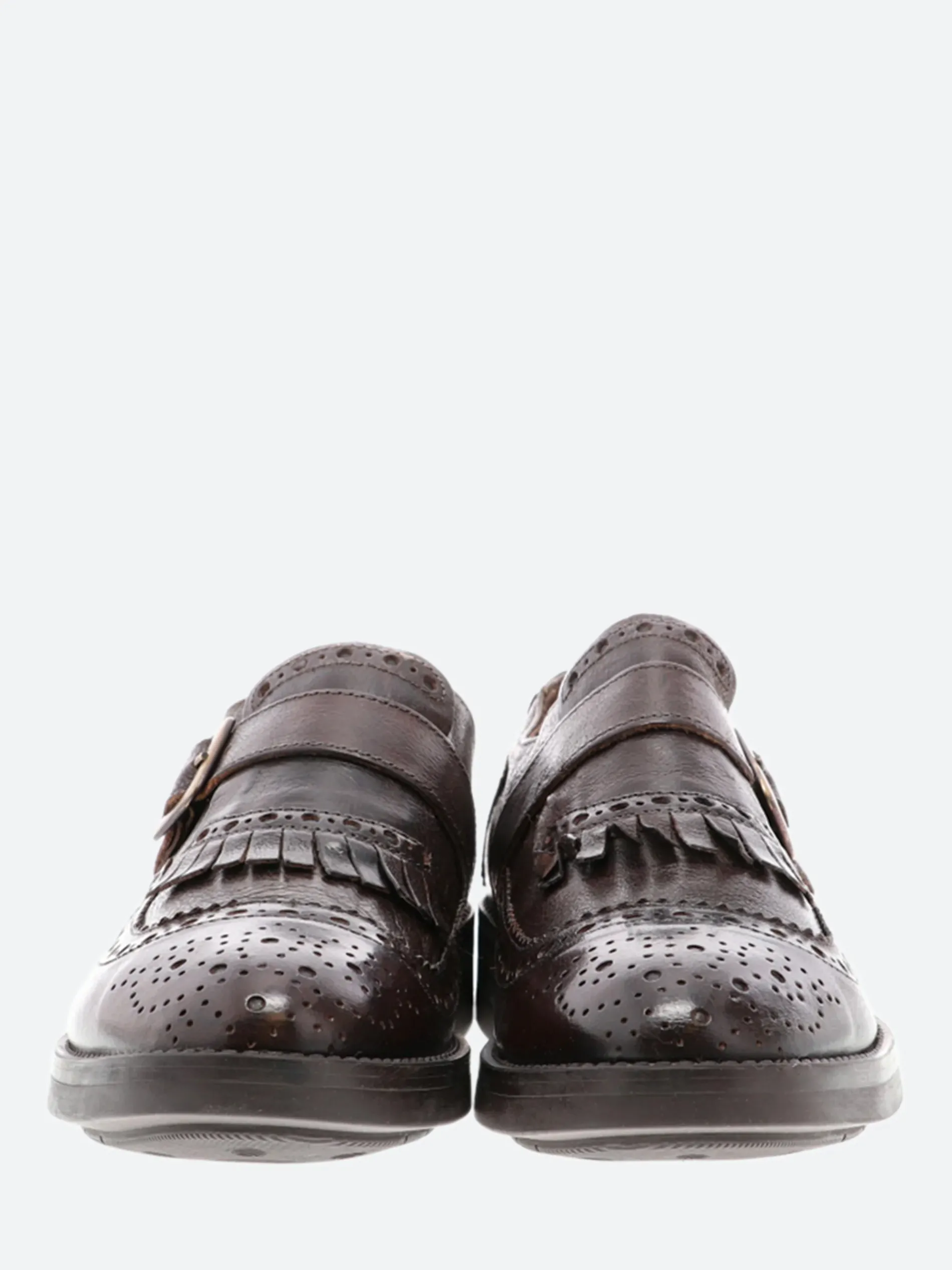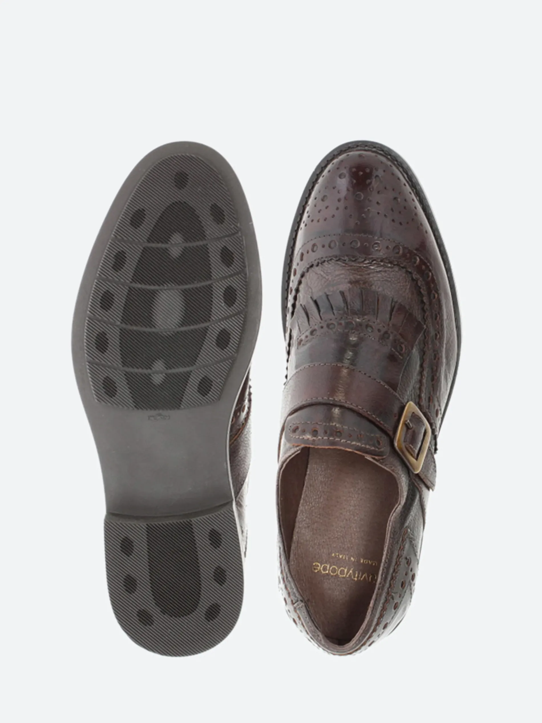 The Rime is a unique combination of brogue and monk strap. Finished with kiltie fringe trim, these shoes have an intentionally vintage look.