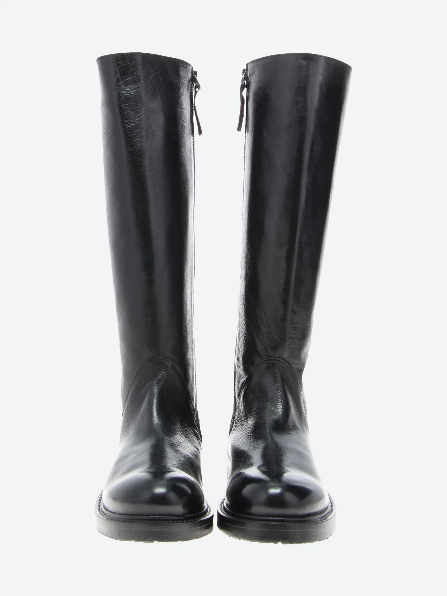 gravitypope Ronan rich leather knee-high boots with a full-length zipper and timeless appeal.
