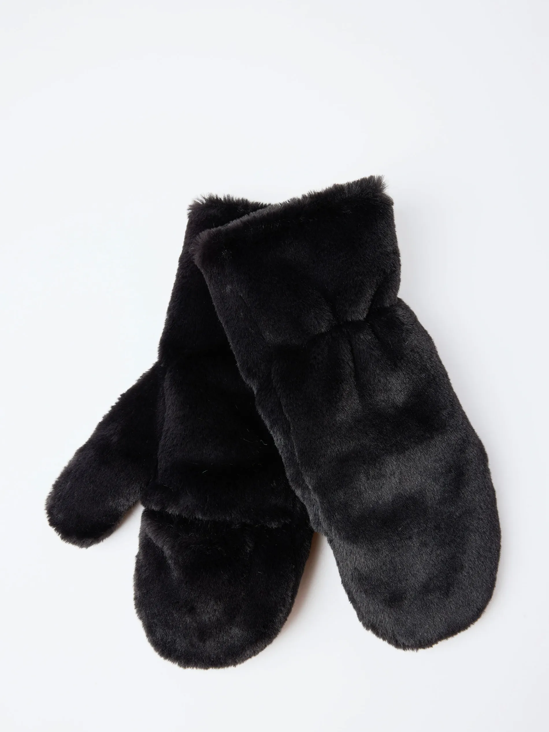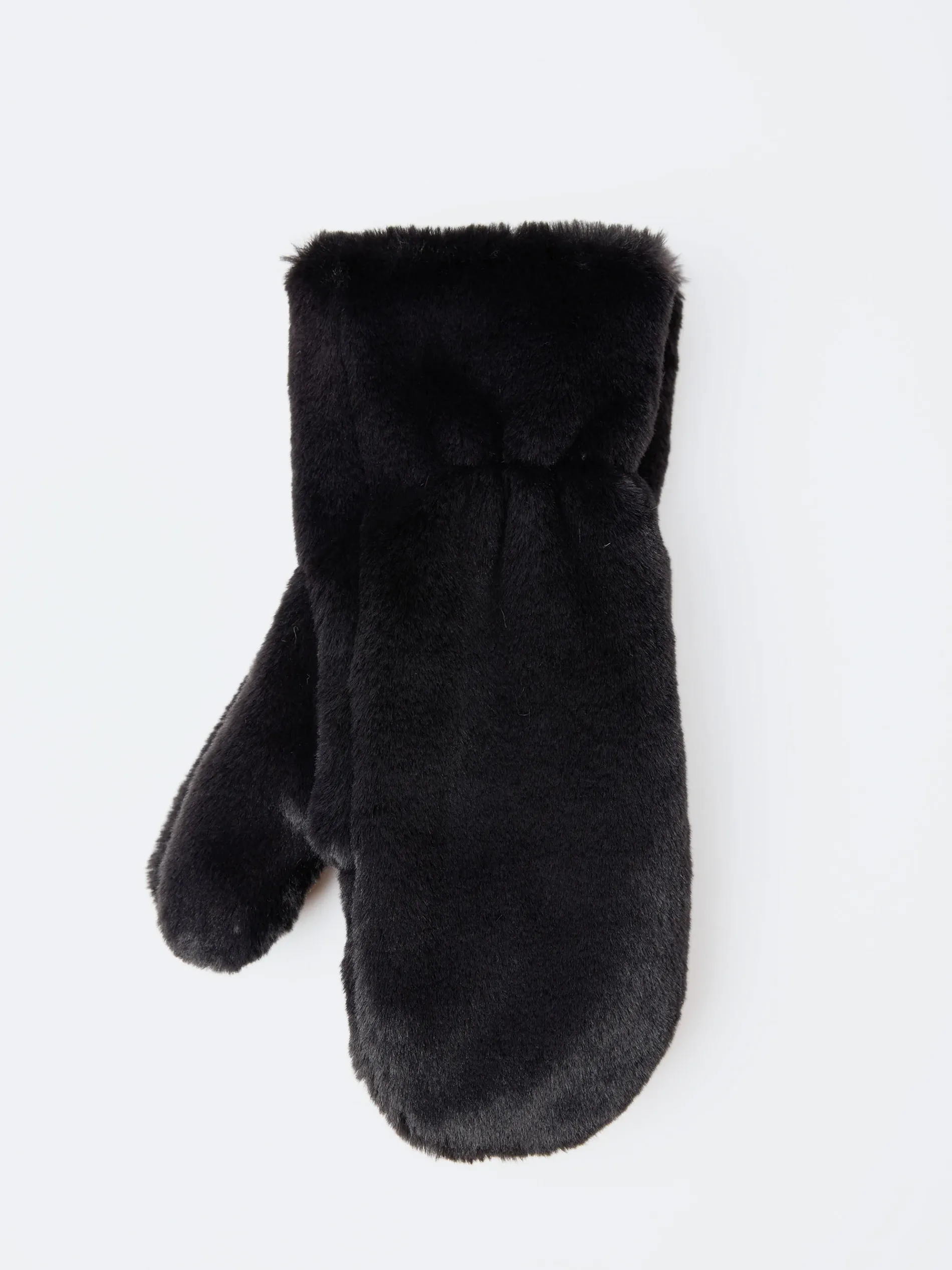 Eco faux fur mittens that are incredibly plush and perfect to pair with a warm wool coat.