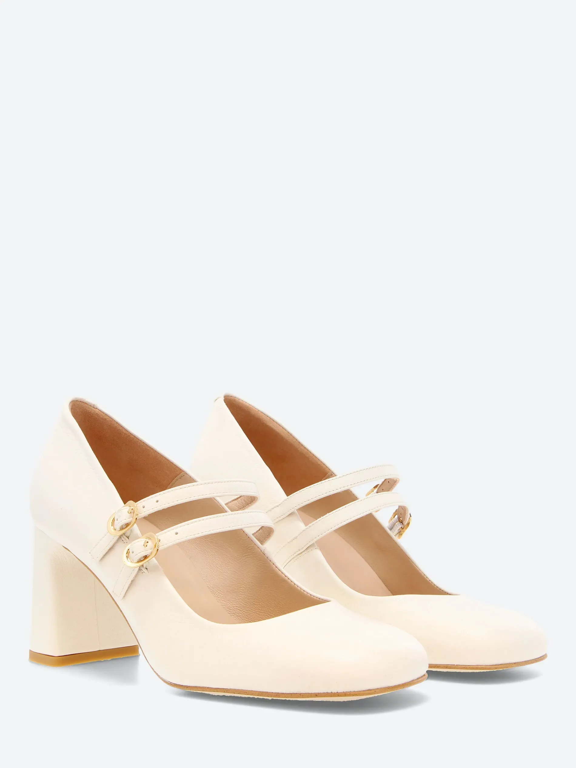 The gravitypope Zabi Mary Jane heel features a sturdy block heel and a chic square toe, offering a modern take on a classic style. With double straps and buckle details, it combines elegance and secure fit. The sleek, glossy finish adds a refined touch, making these heels the perfect choice for both day and evening wear.