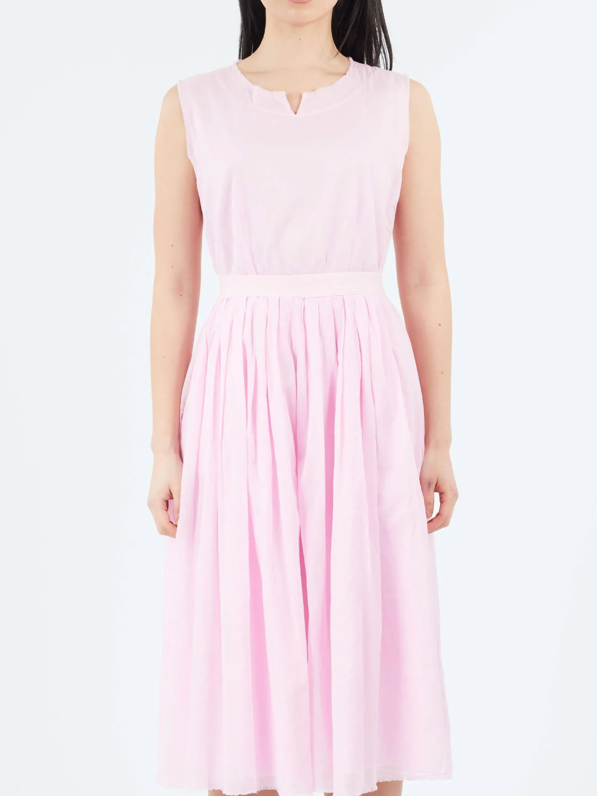 The Hannoh Wessel Darnette is a cotton sleeveless dress featuring a pleated skirt for a flowy, elegant look. It includes side pockets for practicality and a concealed zipper closure for a sleek, seamless finish. Perfect for a refined yet comfortable style.