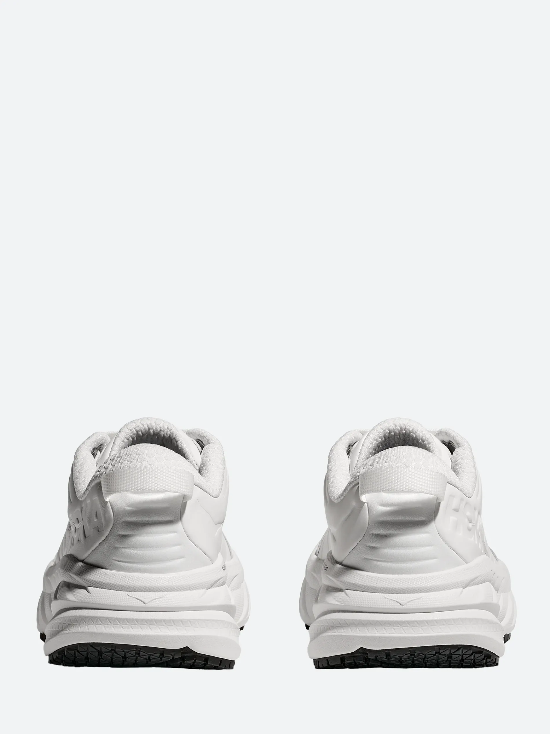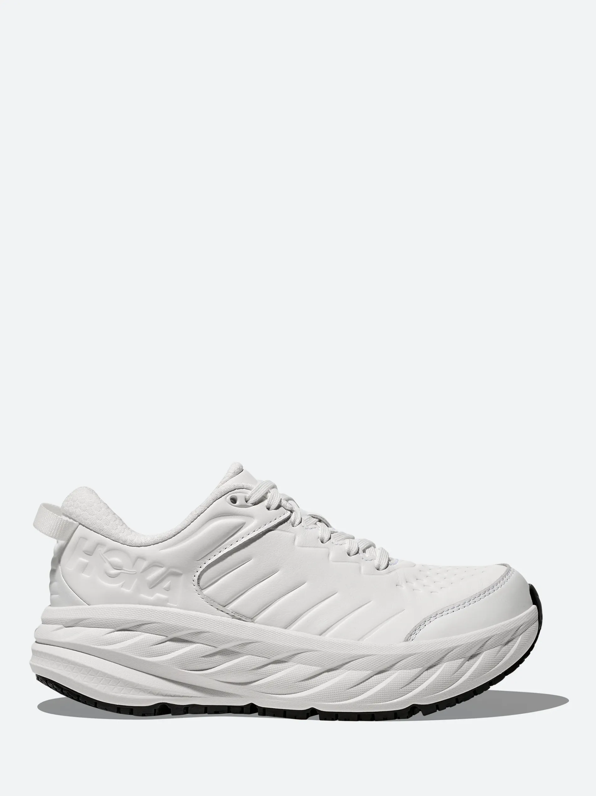 The Bondi SR takes the most cushioned shoe in the HOKA road-shoe lineup and reworks the silhouette to handle the demands of daily life. Updated with water-resistant leather, a slip-resistant outsole and EVA midsole to ensure all-day cushion, this workplace warrior features an ultra-grippy, full ground contact rubber that stands up to the demands of the service industry and medical field alike.