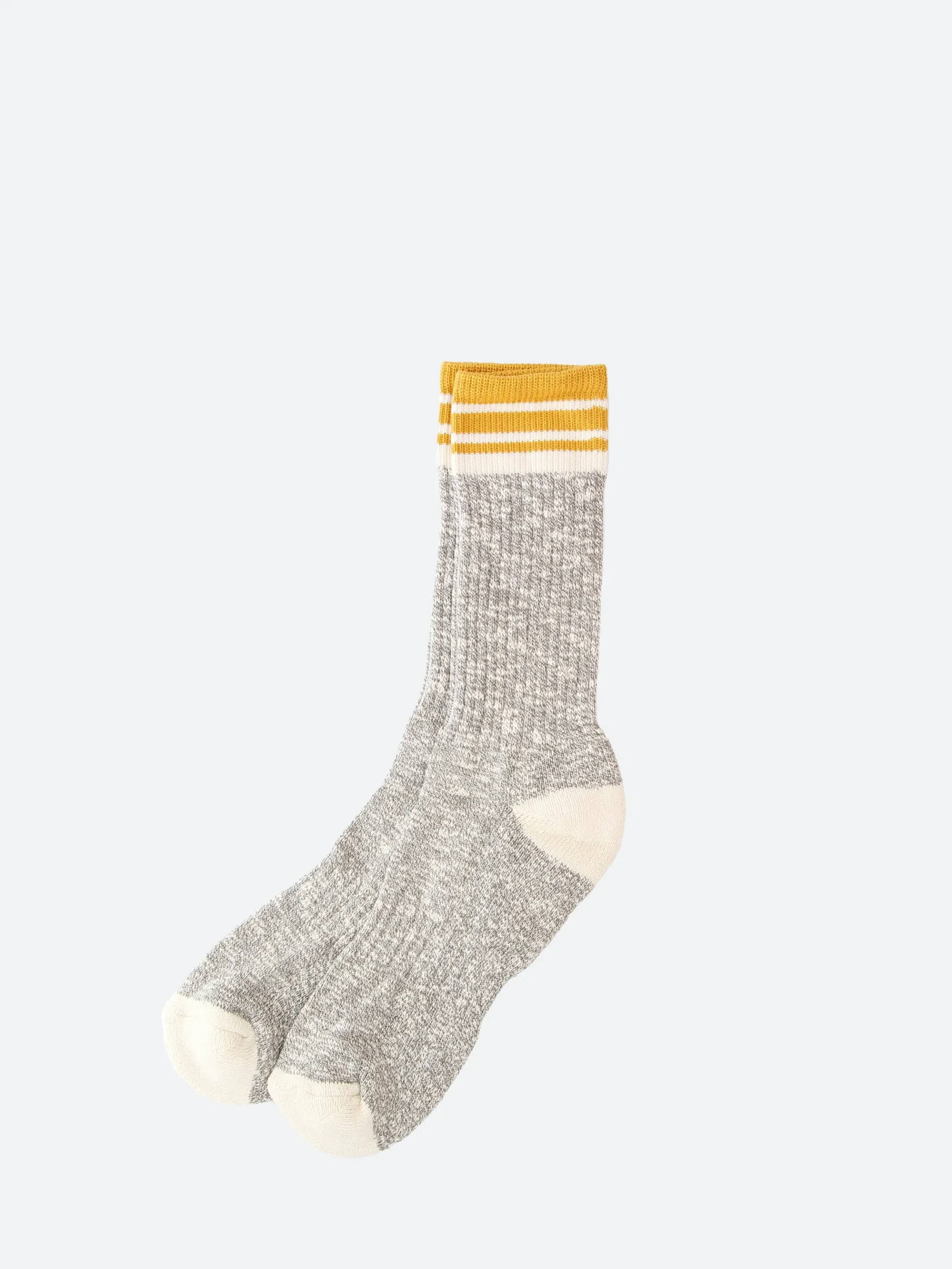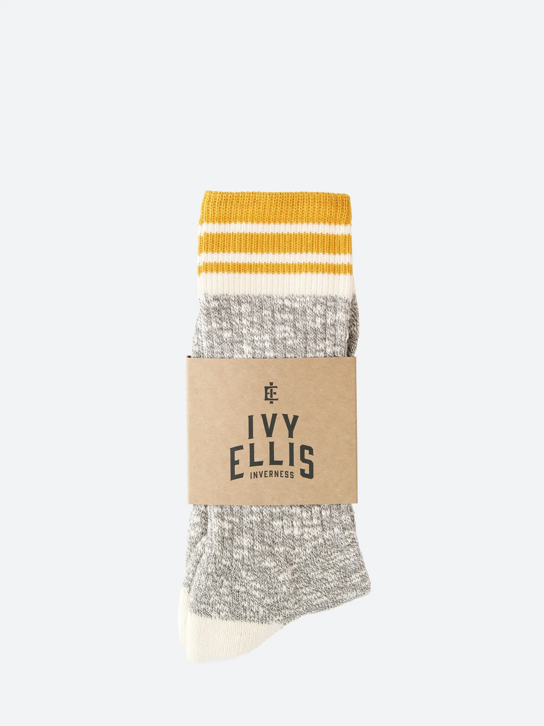 The Sinclair – named after one of the Scottish Highland coastlines. Made in light grey slub yarn with signature vintage cream heel and toe.