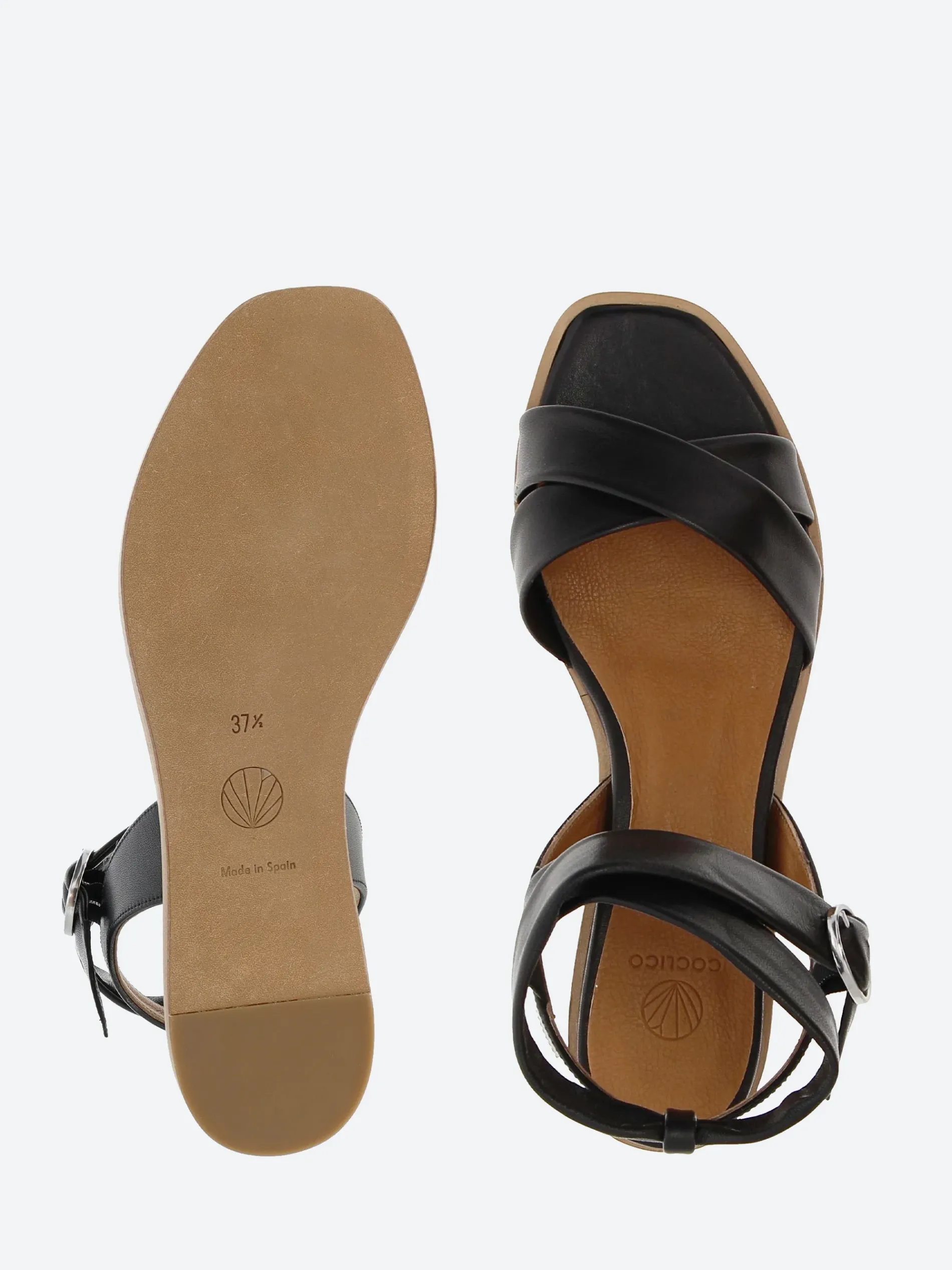 Supple tubular straps cross and support the foot and ankle. Inset leather wrapped wedge and a layered leather sole for urban style and durability.