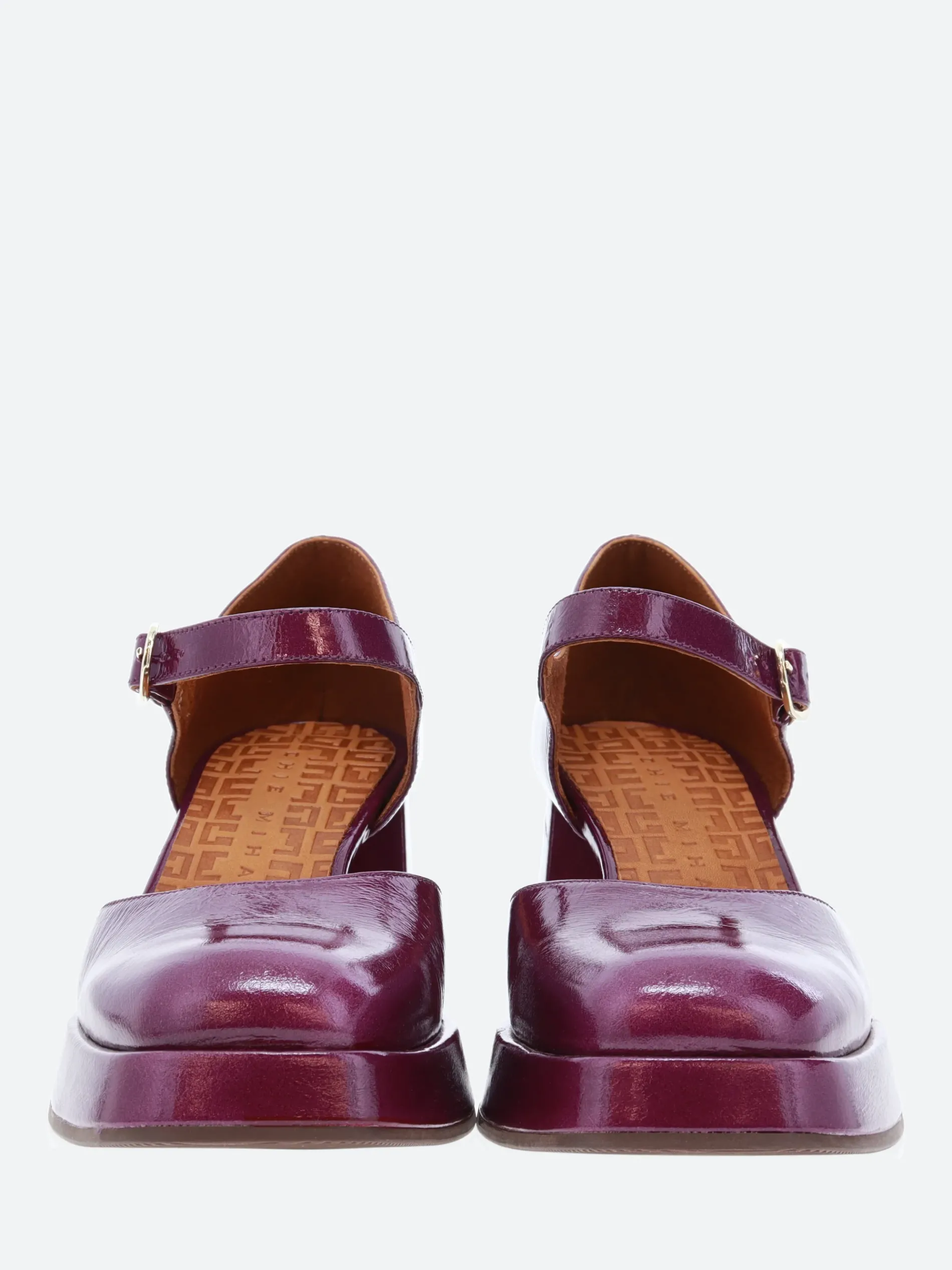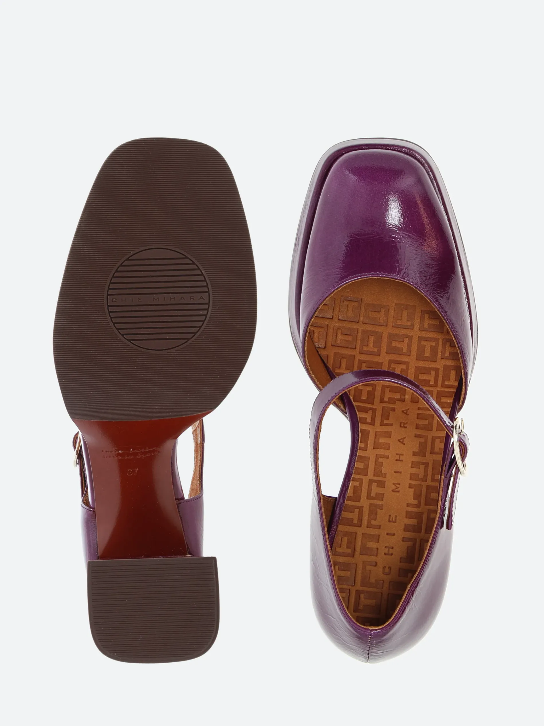 Chie Mihara Kento, an ankle strapped sandal with a soft leather upper, sitting on a high, stacked heel.