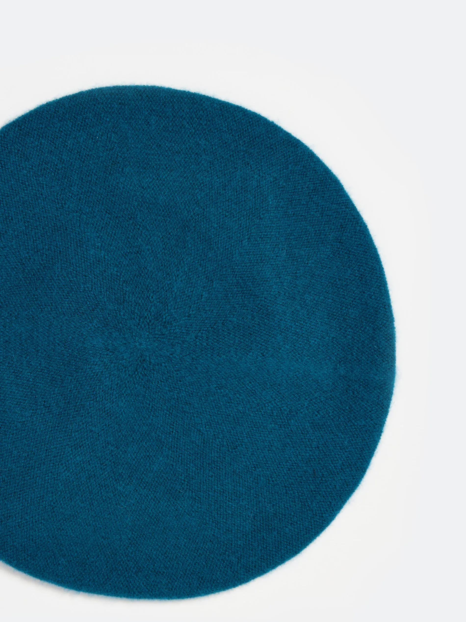 The Roll Up Beret in 100% cashmere. We recommend to wear it asymmetrically pushed backwards, but of course this is up to you!