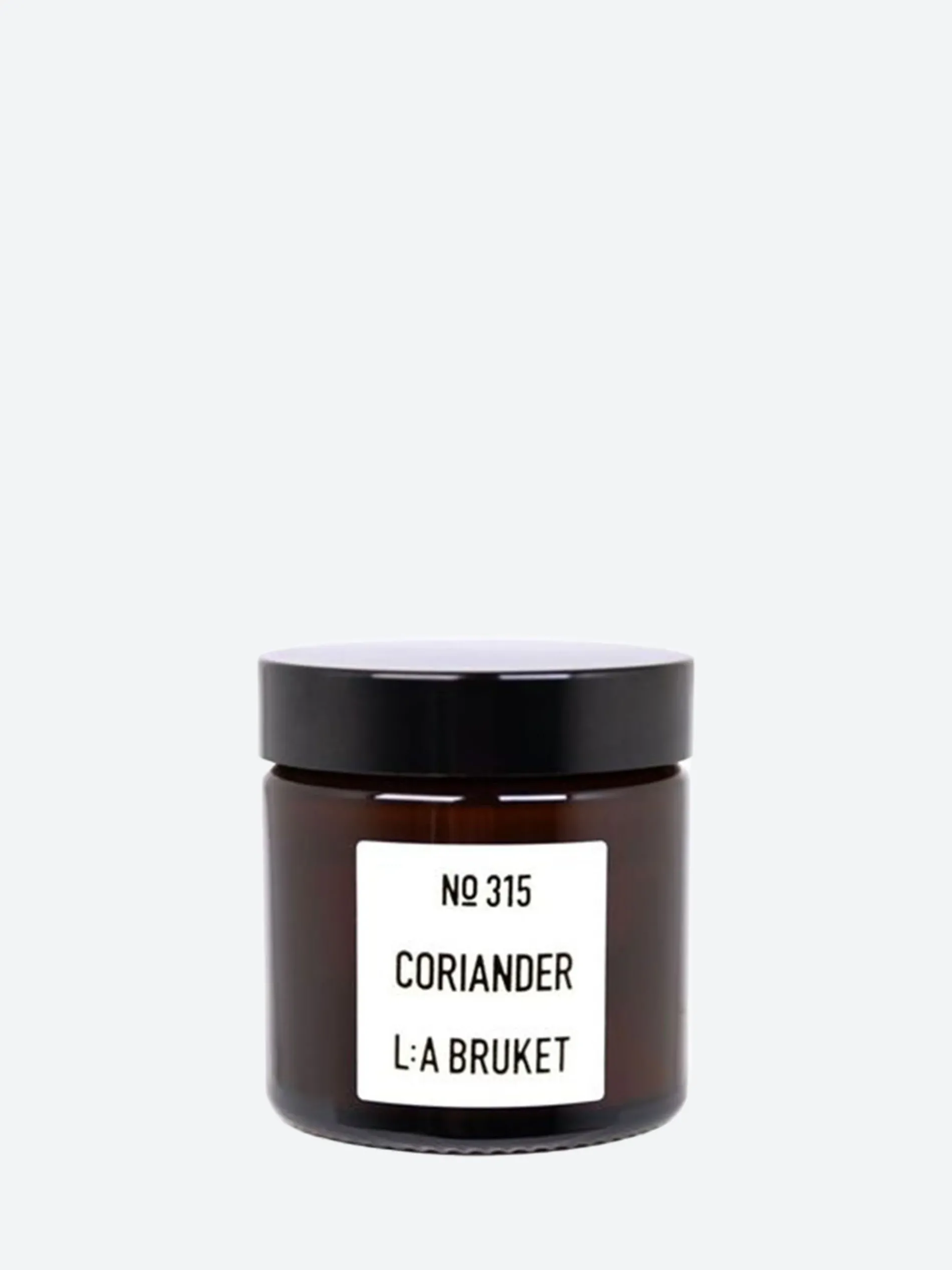 Candle made of organic soy wax with a scent of coriander. The candle is filled by hand in a mouth-blown tinted amber glass.