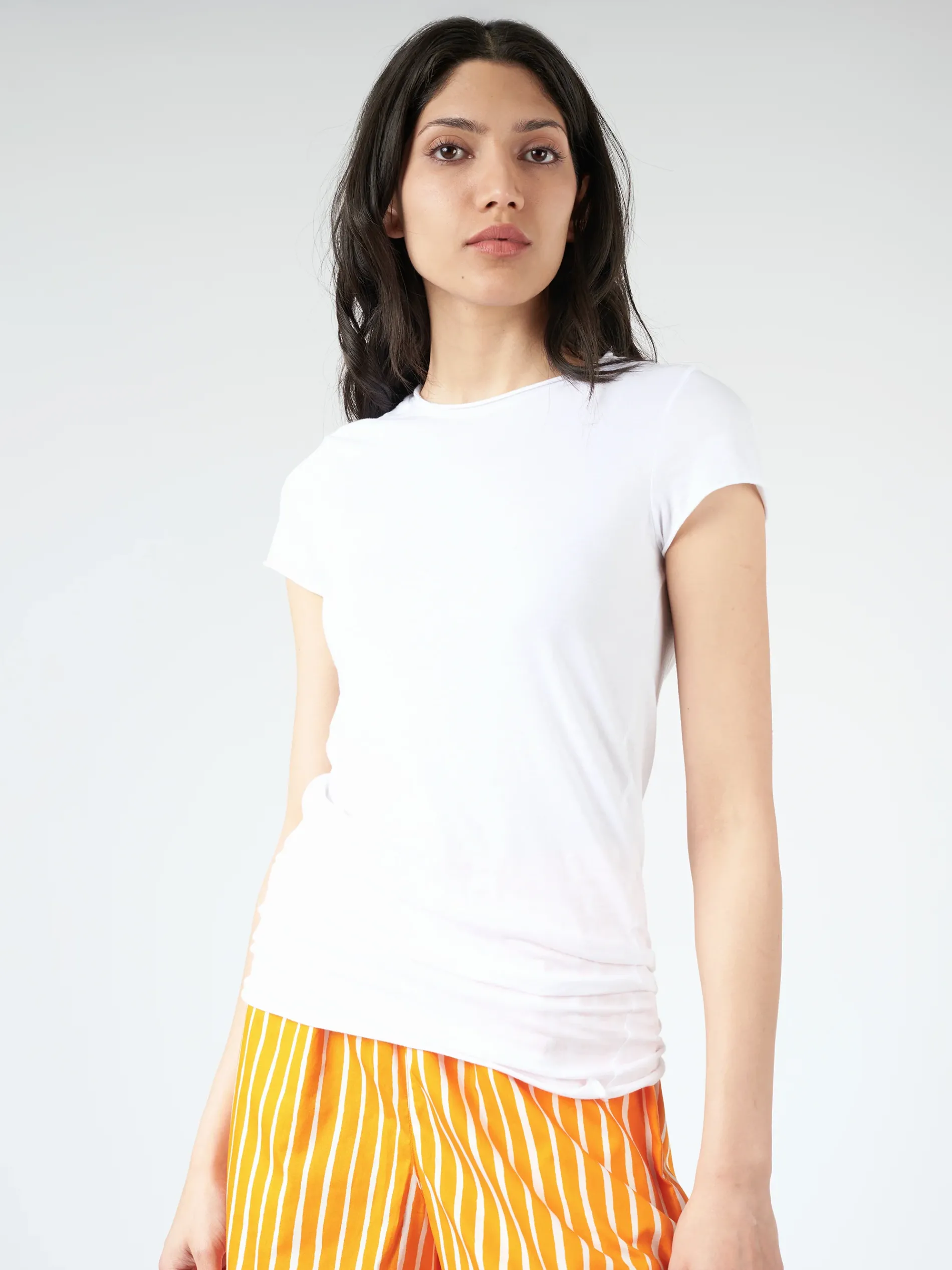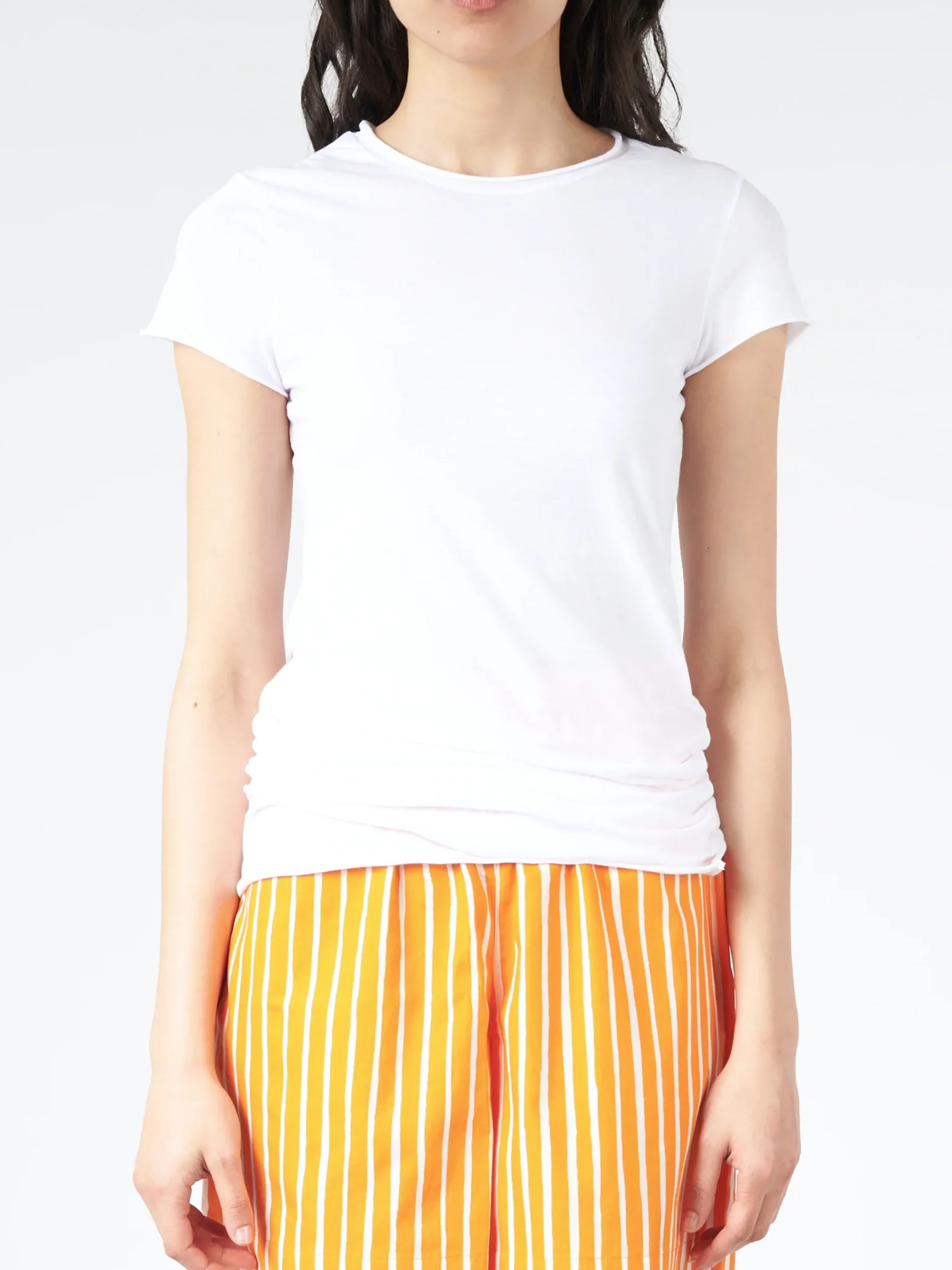 Labo.Art Basica is a short sleeve knit t-shirt with slight stretch. The piece stays true to the brands ethos of an uncomplicated aesthetic, embodying clean and simple elegance with a playful quirk.