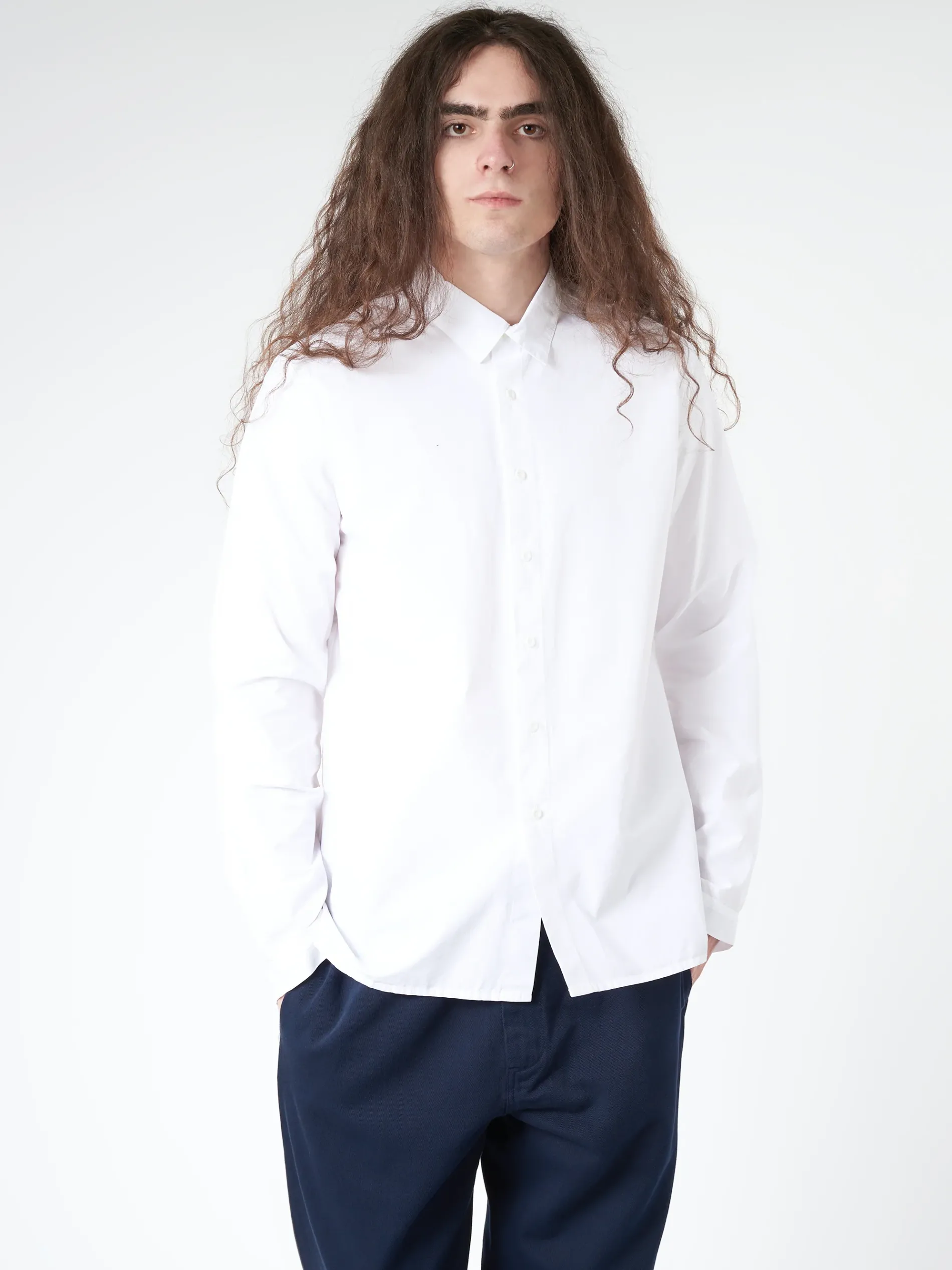 Labo.Art Man loose collared shirt in light cotton poplin with long sleeves.