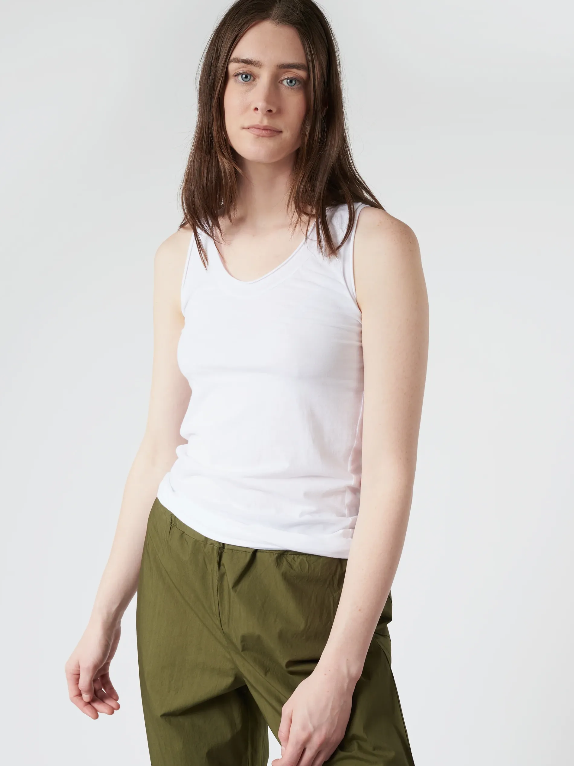 Labo Art’s Canotta is a cotton poplin tank top featuring a scoop neck, rolled edges and a slight racerback cut. This is a great quality basic with subtle details to set it apart from other tanks.