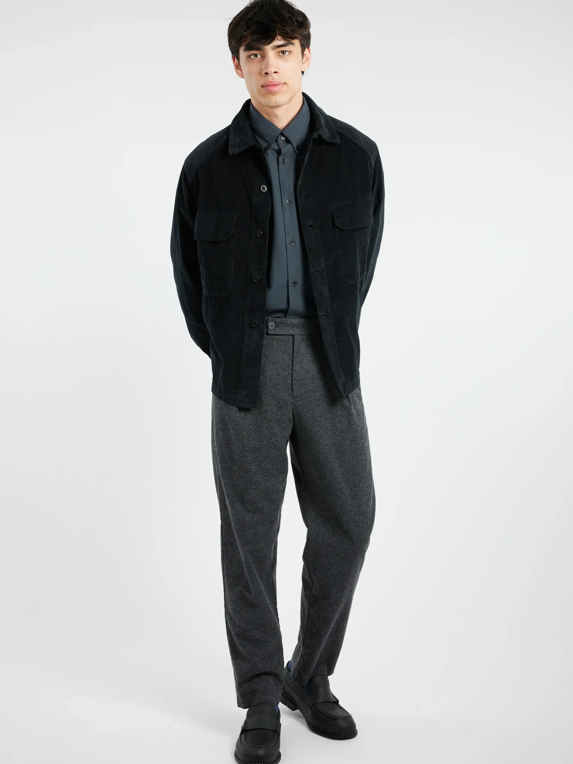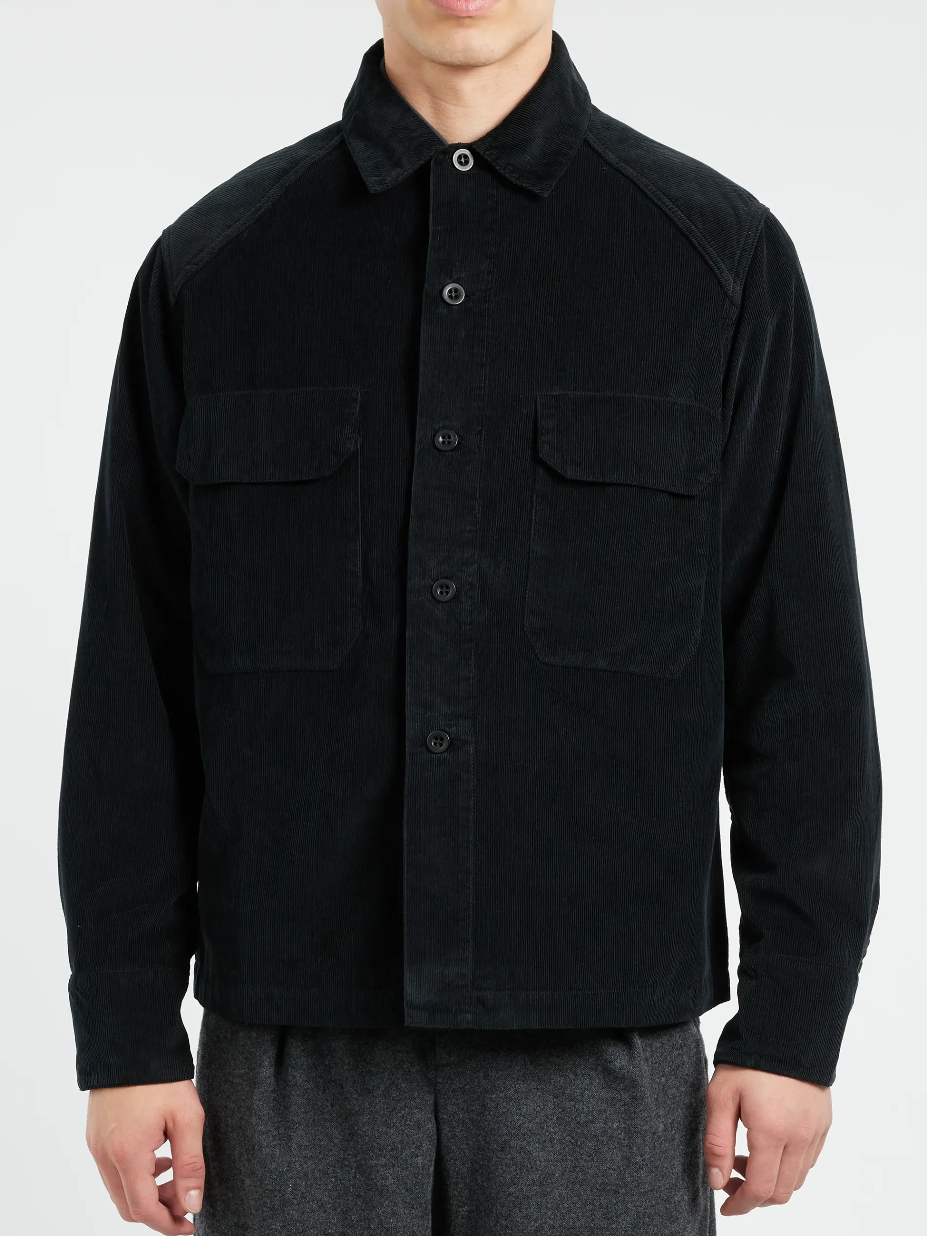 Buttoned jacket with collar, attached pockets and raglan sleeve made in cotton corduroy.