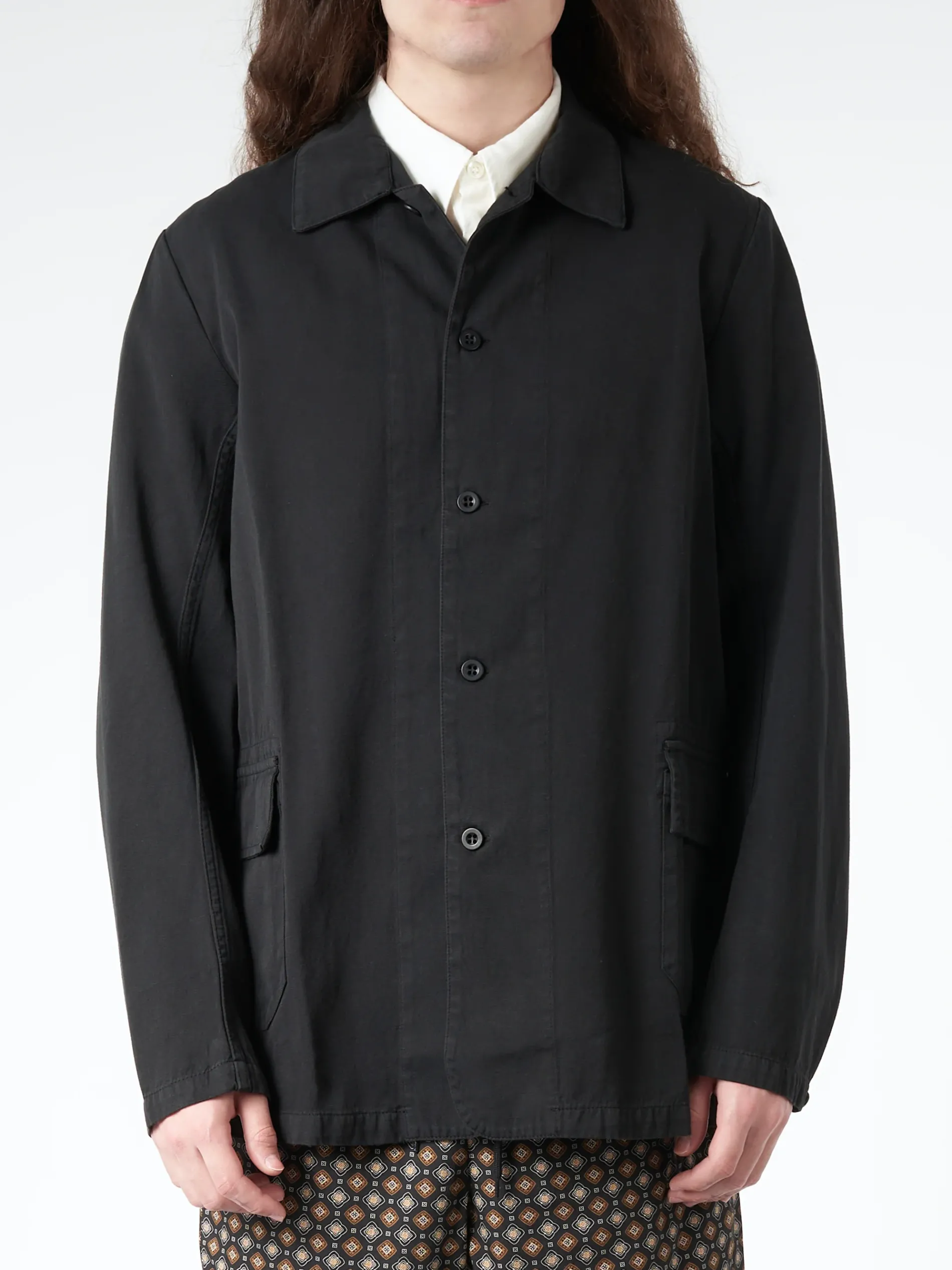 Labo.Art Man straight cut worker jacket in woven cotton with shirt collar and attached pockets.