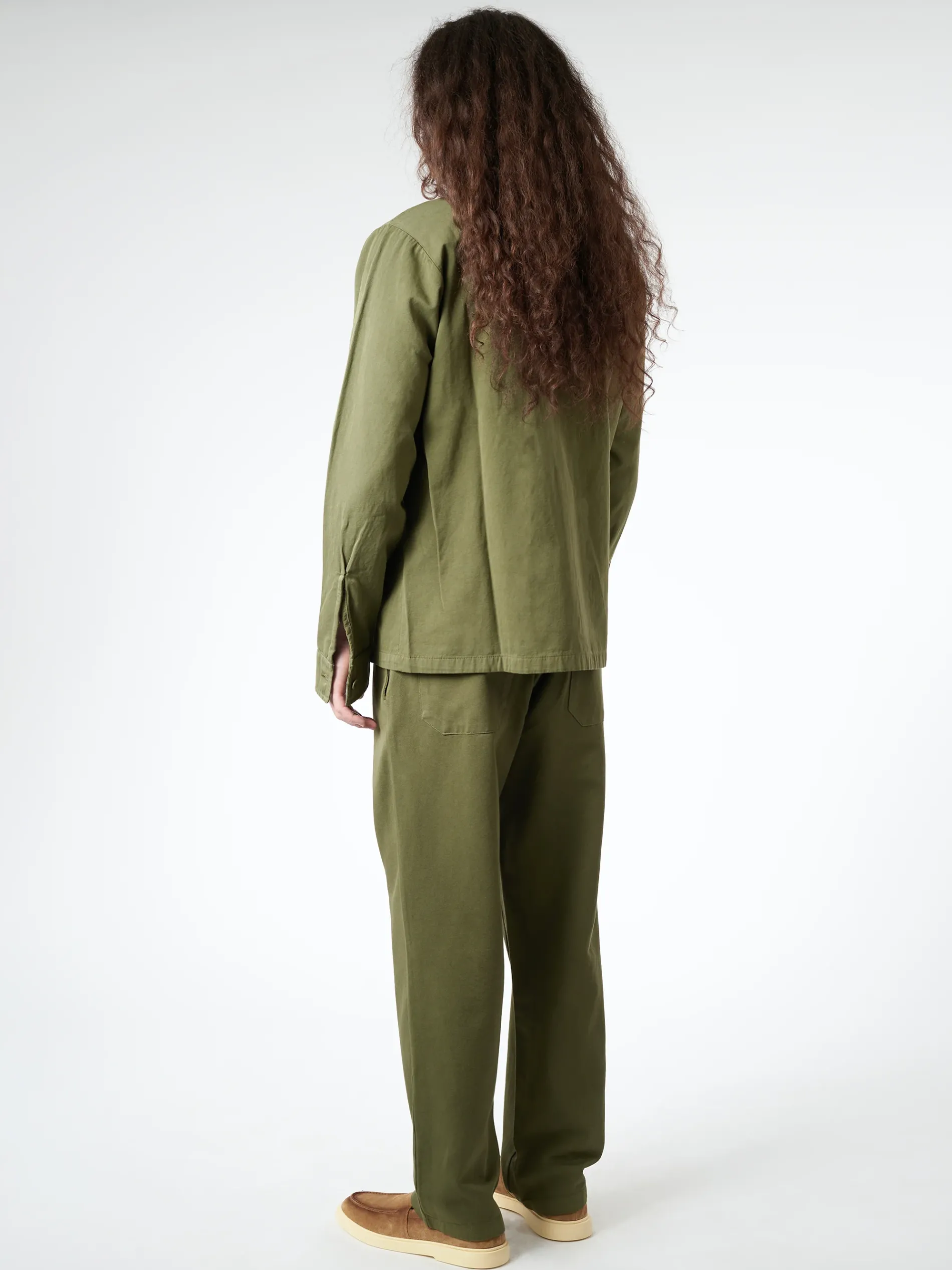 Designed using a soft cotton and linen blend, this jacket combines elements of traditional workwear. Two chest flap pockets and a full-button closure provide functional details for a versatile and stylish piece.