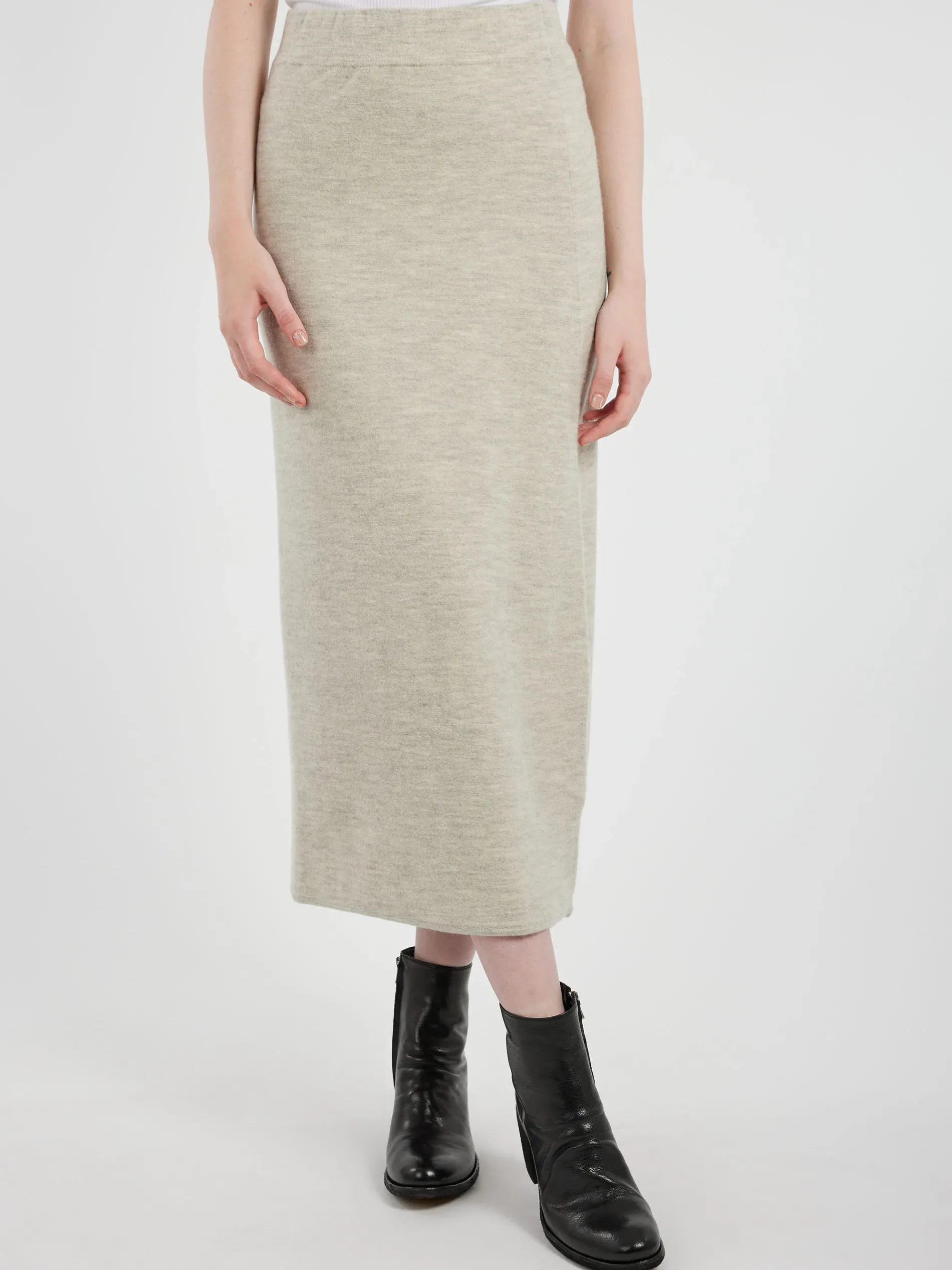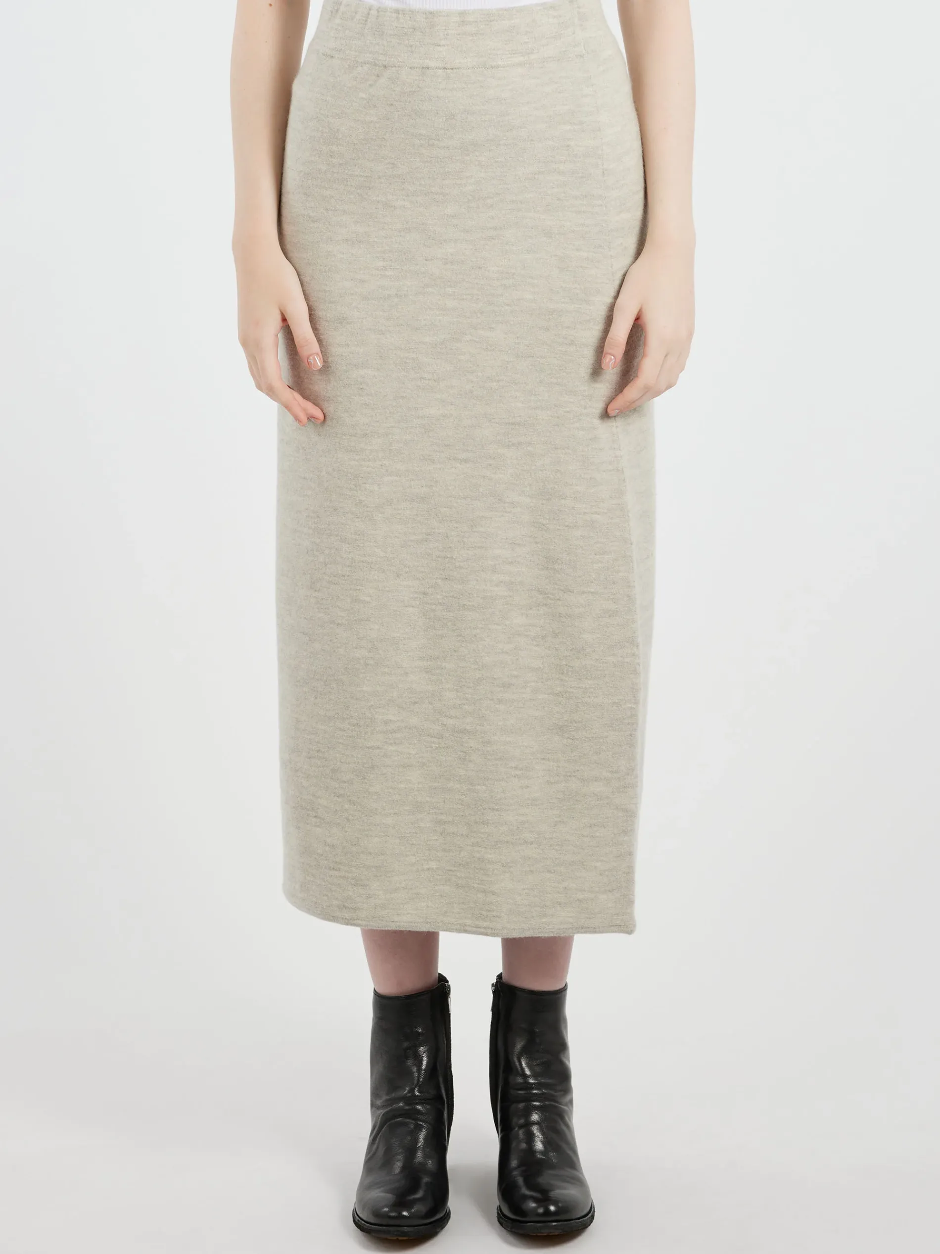 Lauren Manoogian Bell Skirt is a pull-on knit style with a reverse knit texture and softly washed hand.