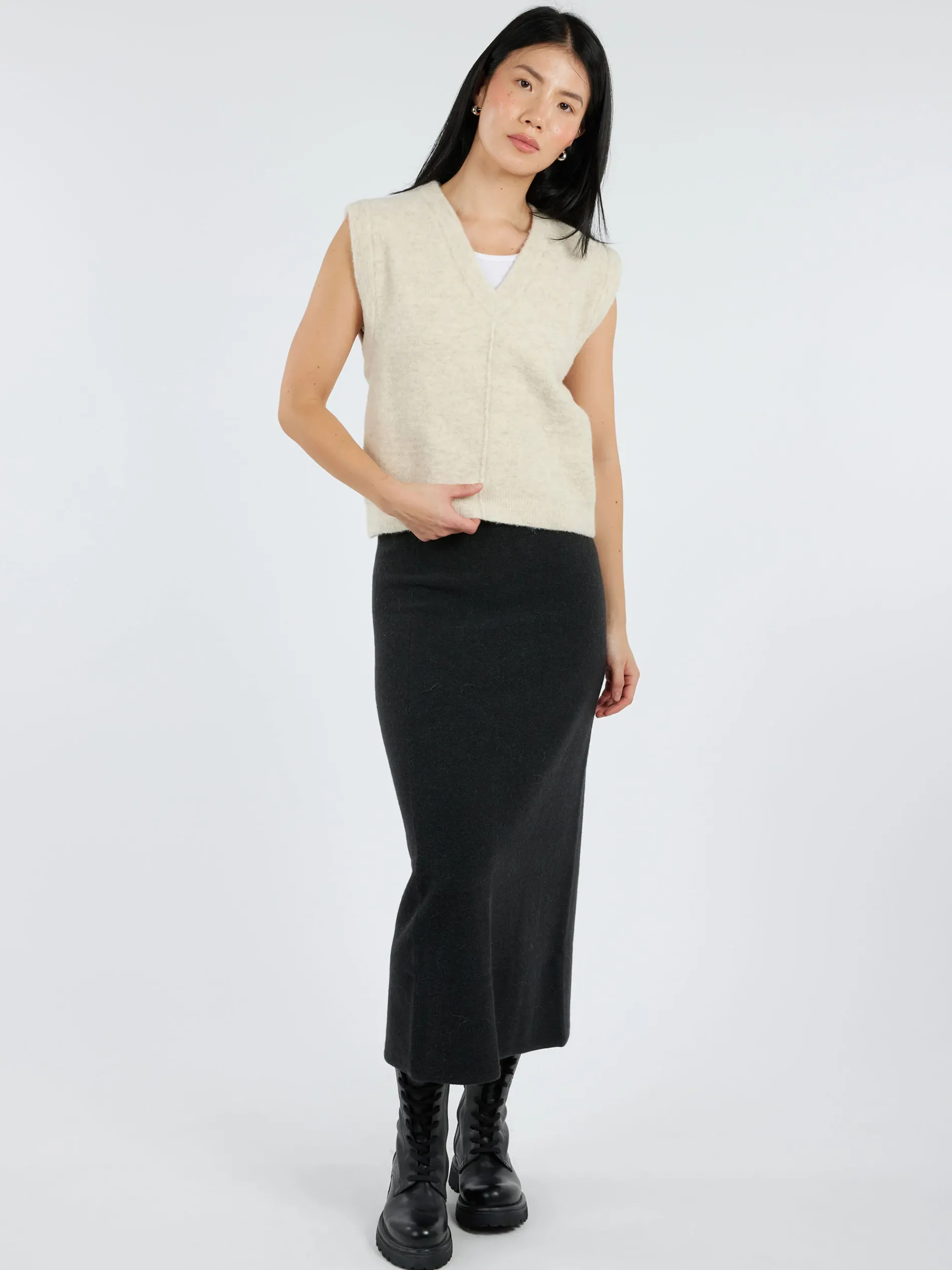 Lauren Manoogian Fleece Vest with a soft micro boucle texture with raised seam details.