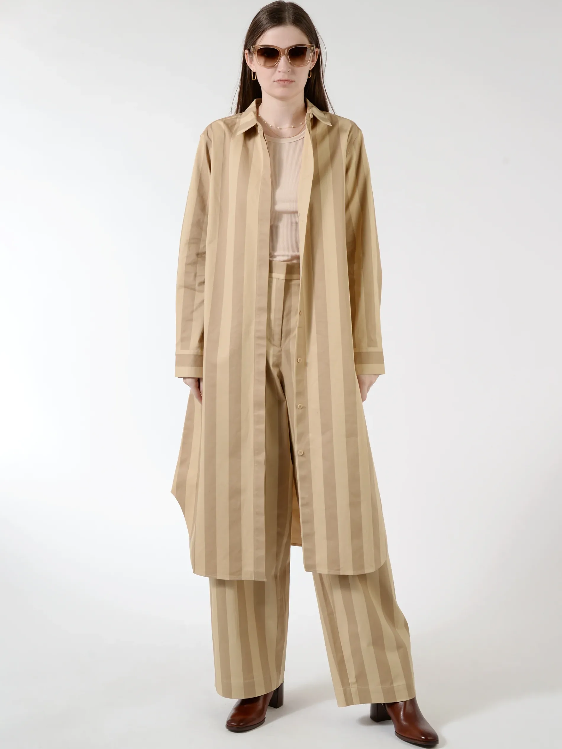 Made from firm cotton, the Ajassa trousers have a relaxed fit and a straight leg and they are printed in the Linja pattern – an even, medium-sized vertical stripe.