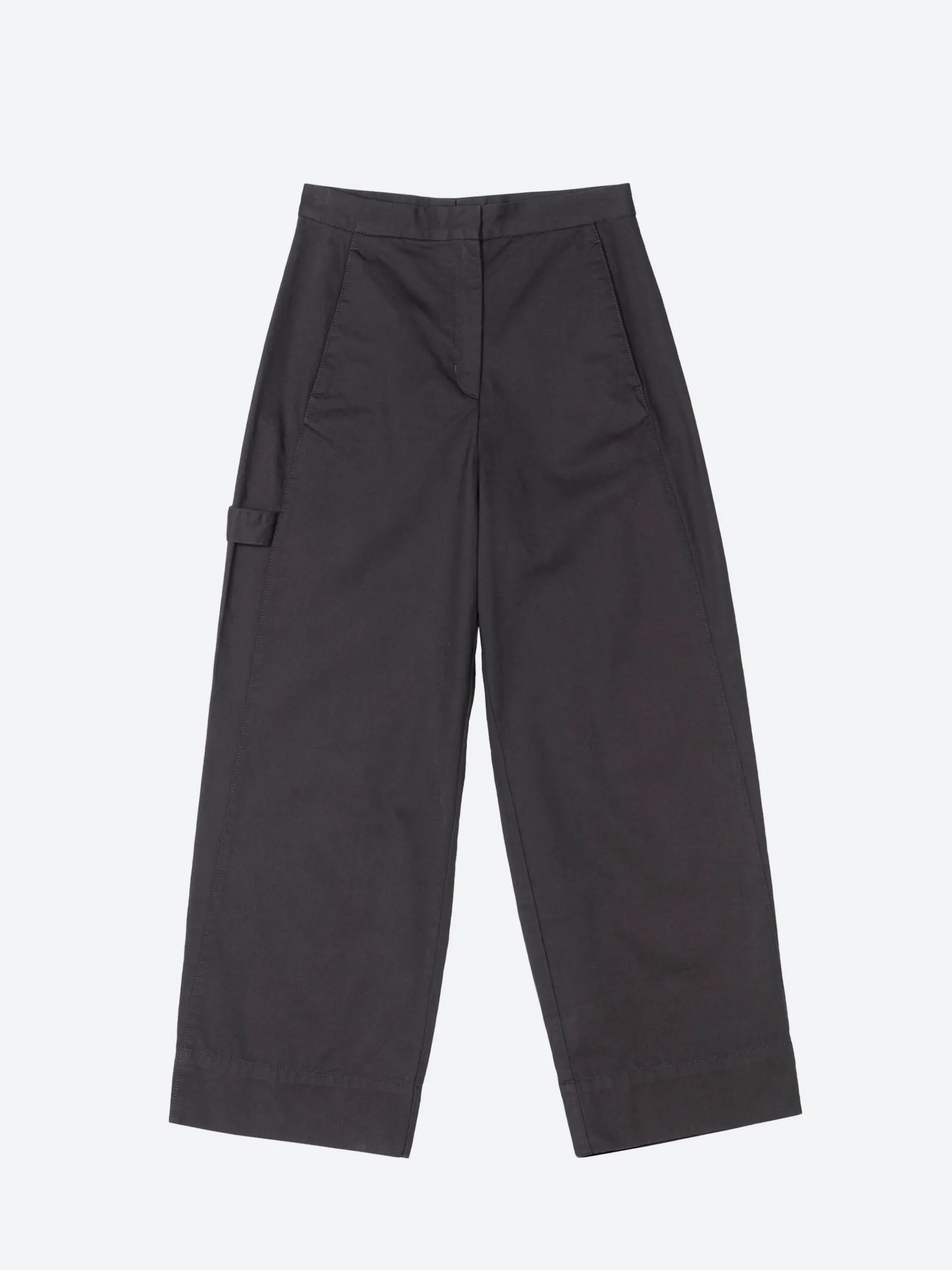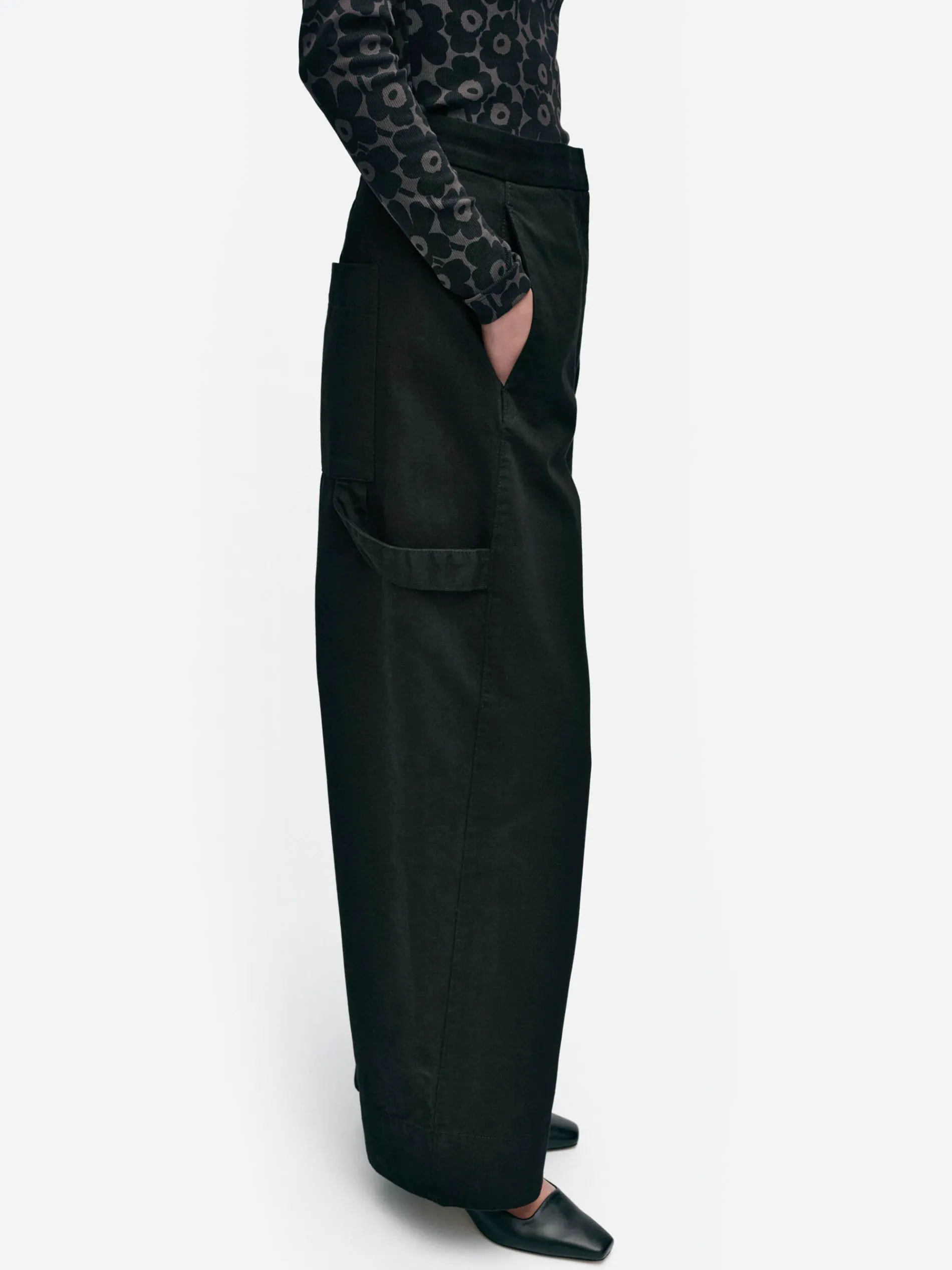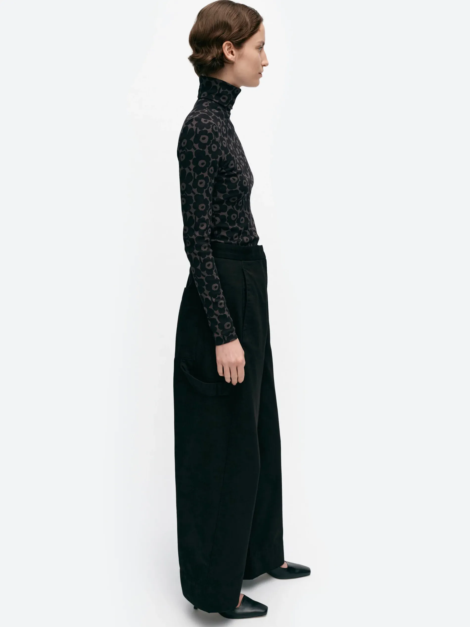 The Funktio trousers are made of organic cotton twill, and they have a relaxed, straight fit. The trousers are dyed with a botanical nutgall dye.