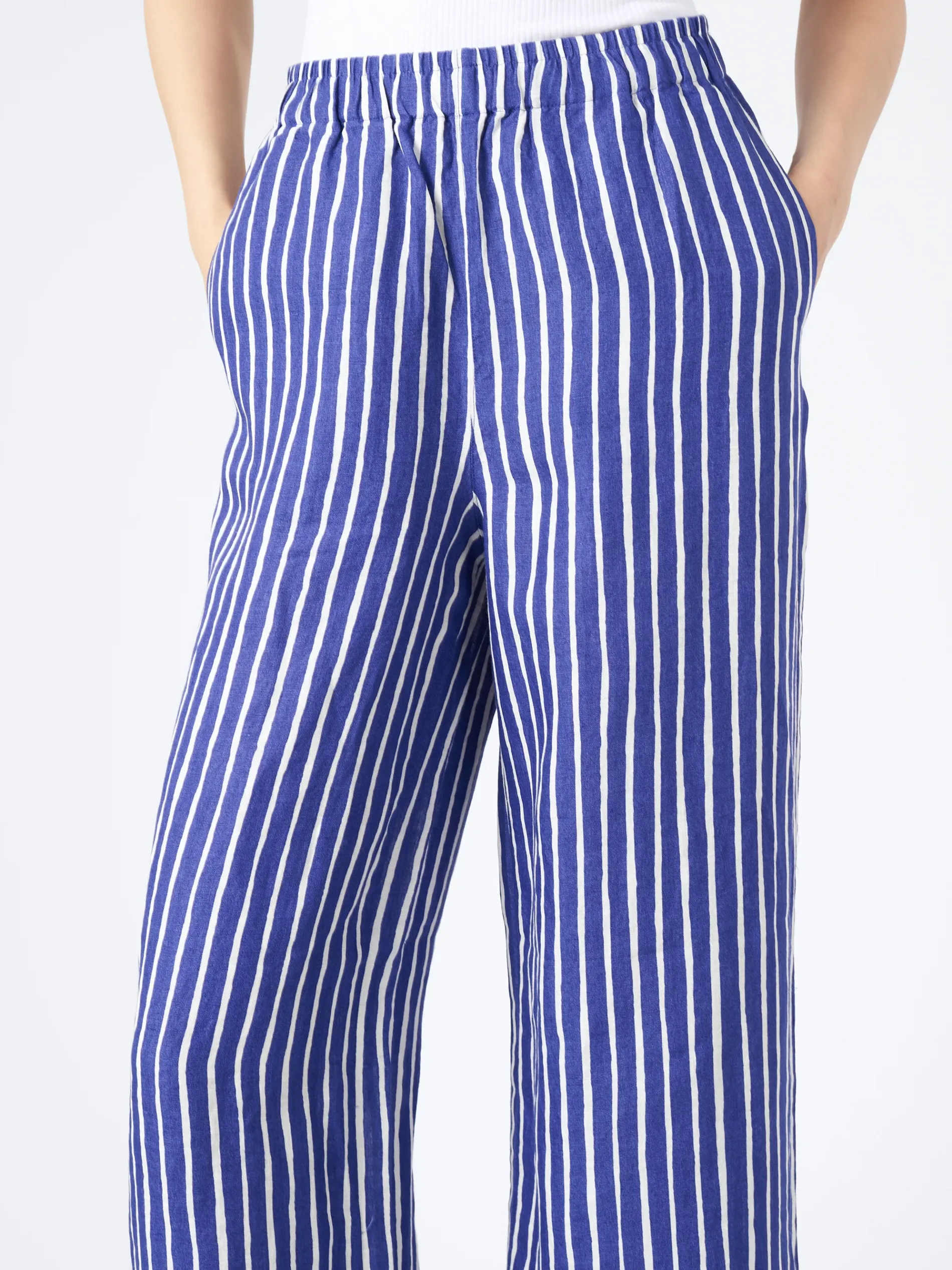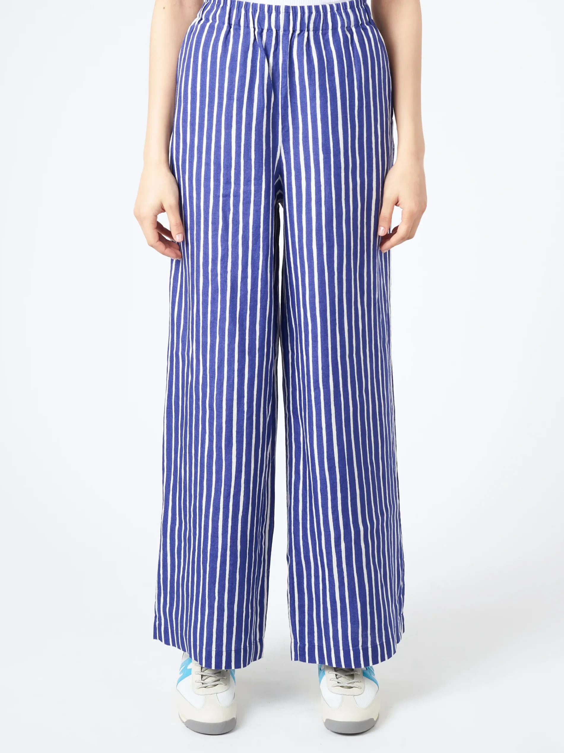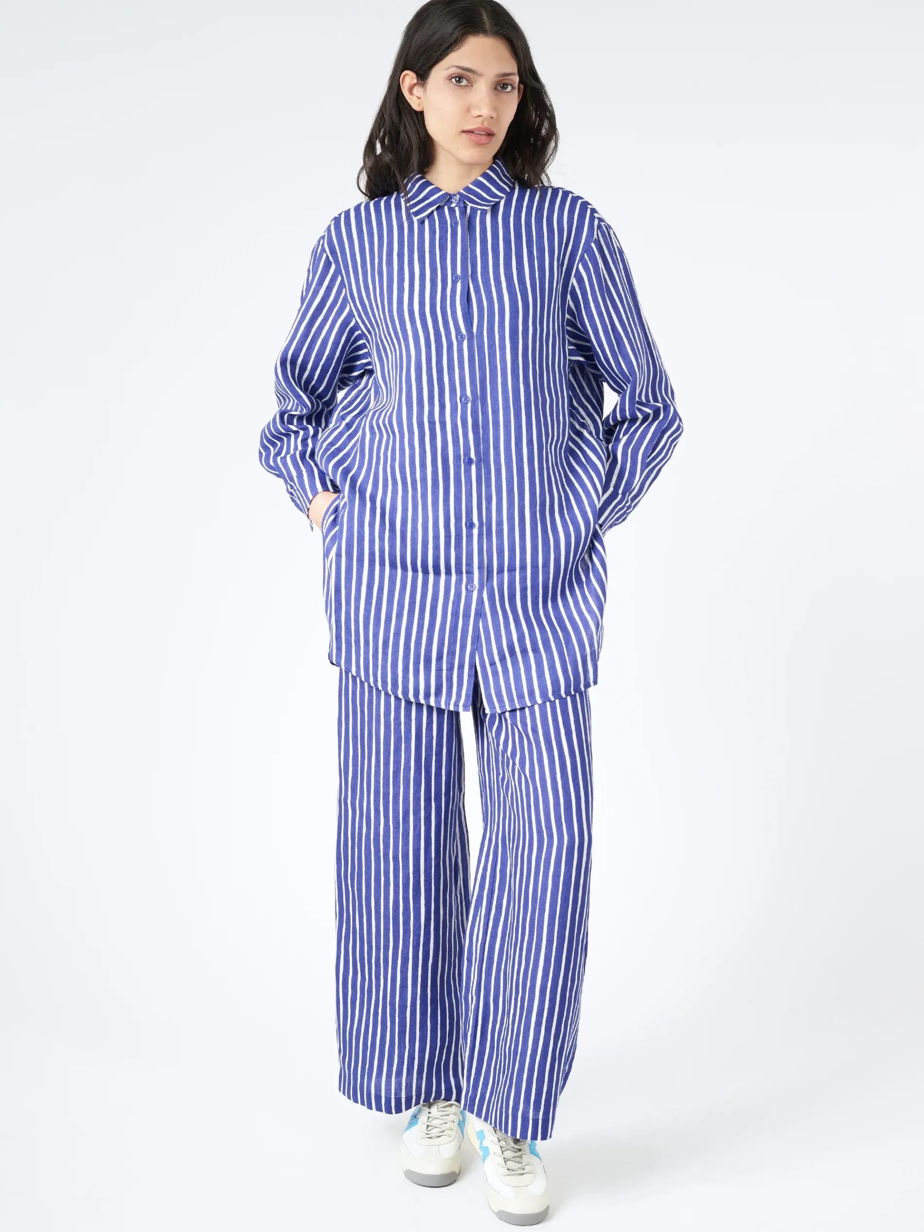 The Merivirta linen trousers have a relaxed fit and long, straight trouser legs, and they feature the Piccolo pattern, which is printed in Helsinki.