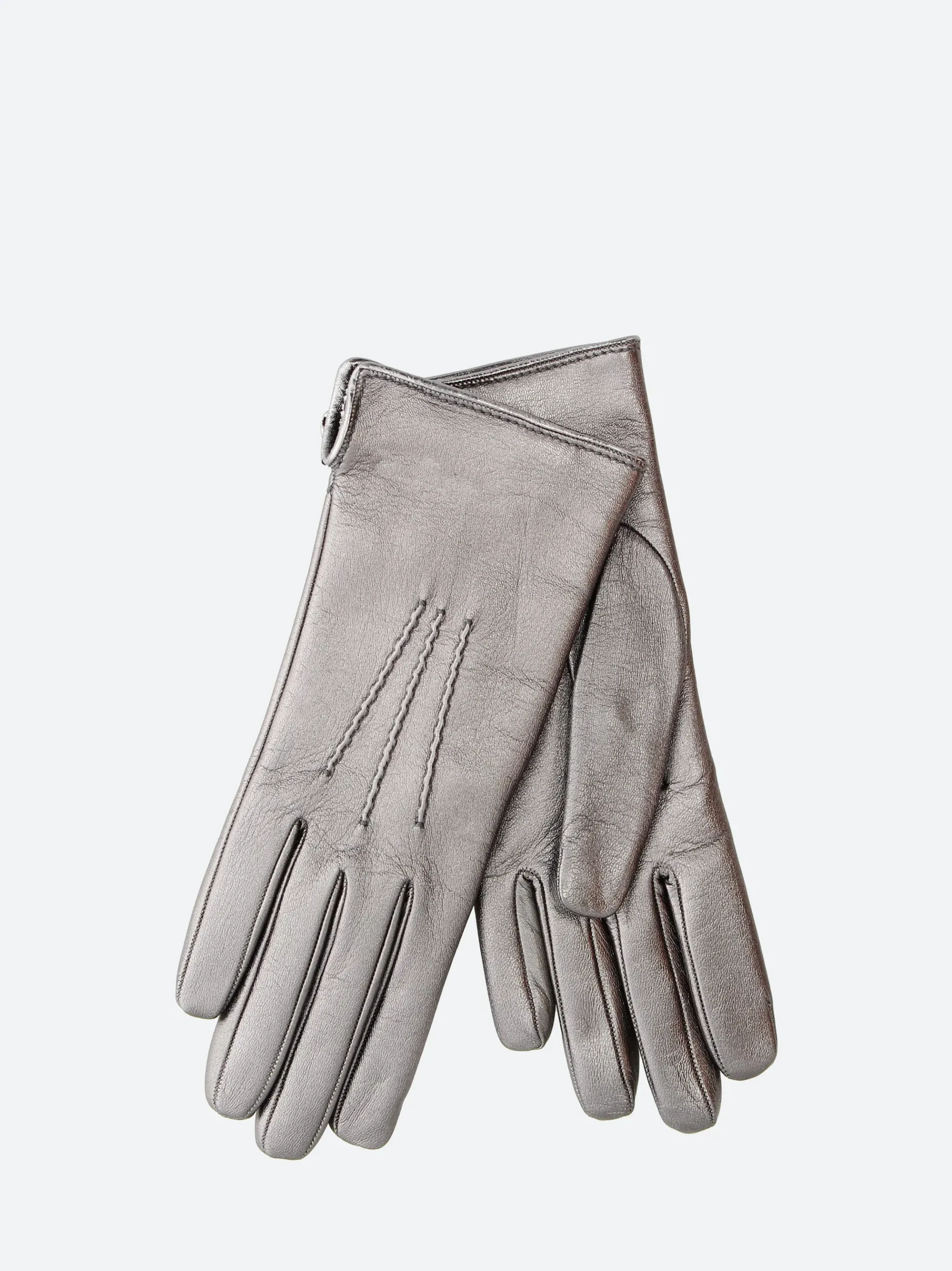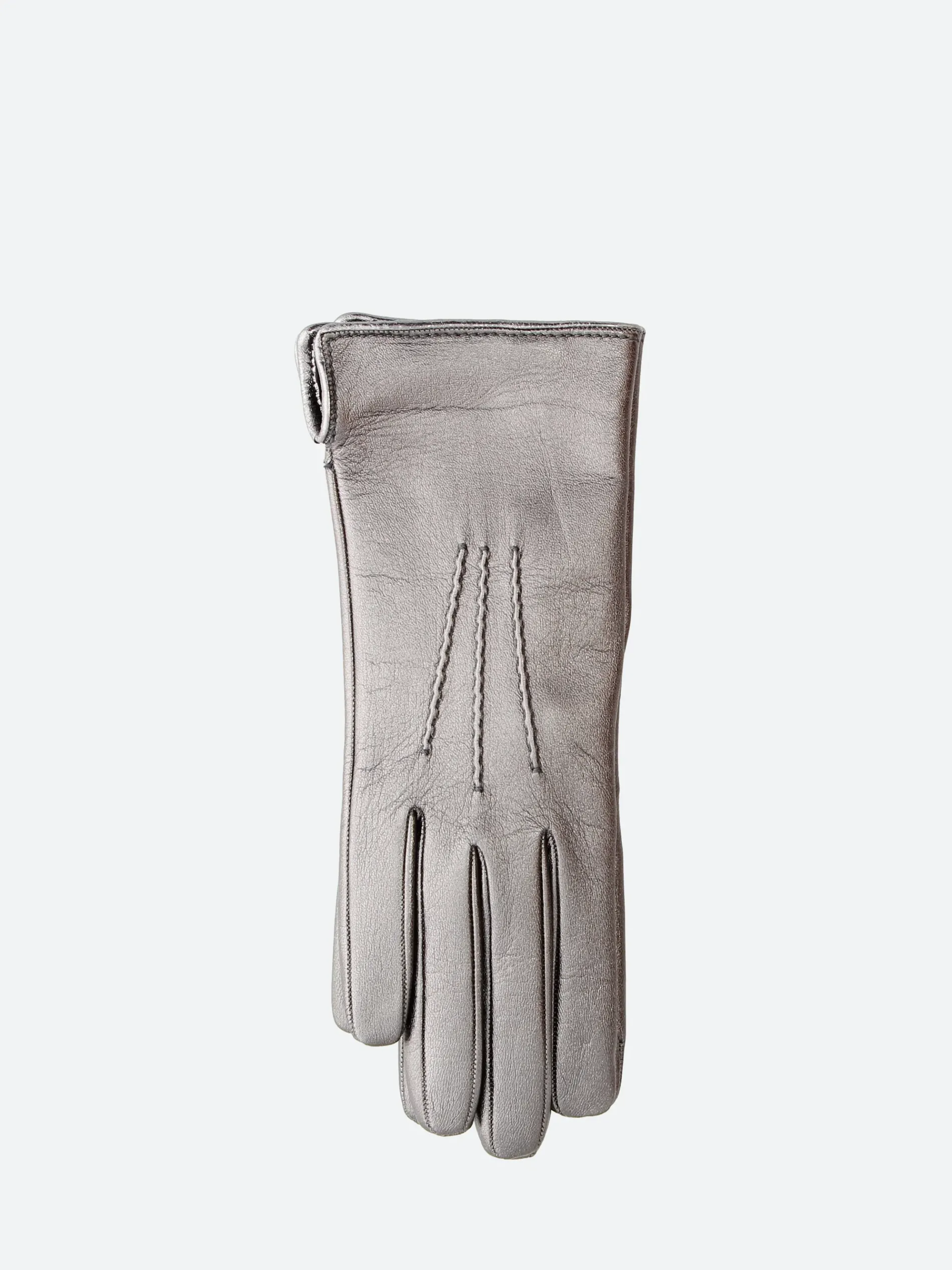 Women’s metallic leather glove with soft 100% cashmere lining and side opening on the wrist.