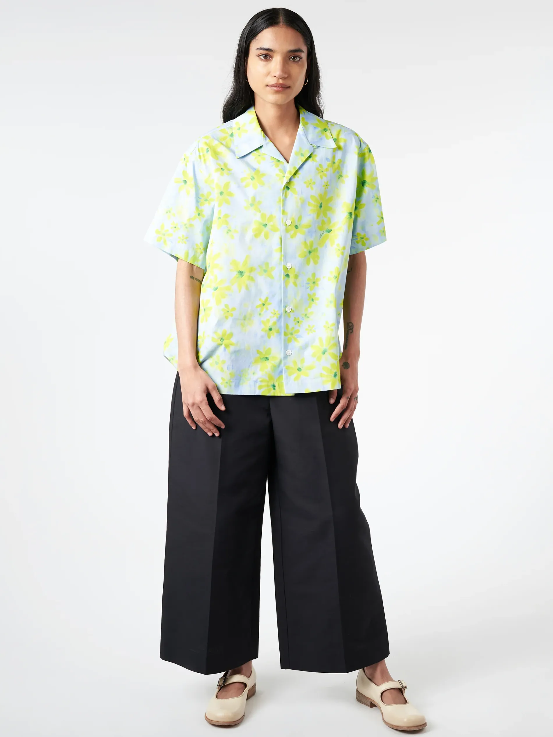 Short-sleeved cotton poplin bowling shirt. Embellished with this season’s Parade print, depicting joyfully blooming flowers.