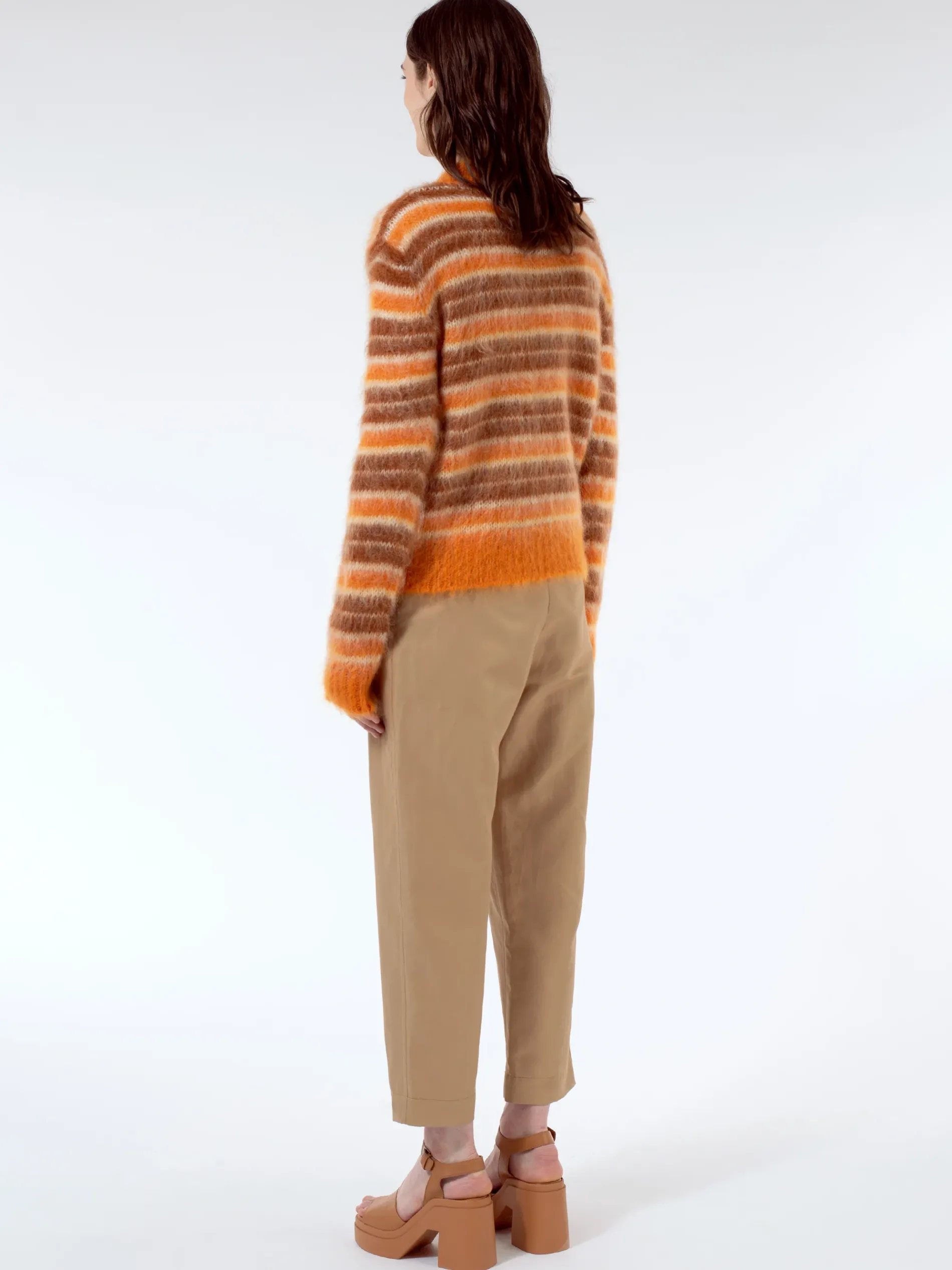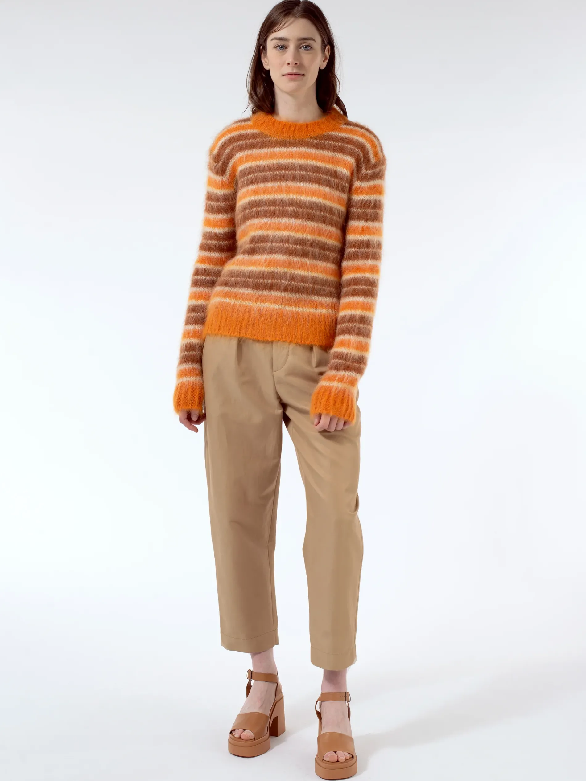 A signature crew neck sweater from Marni crafted from a fuzzy mohair blend. The relaxed cut adds a cozy element.
