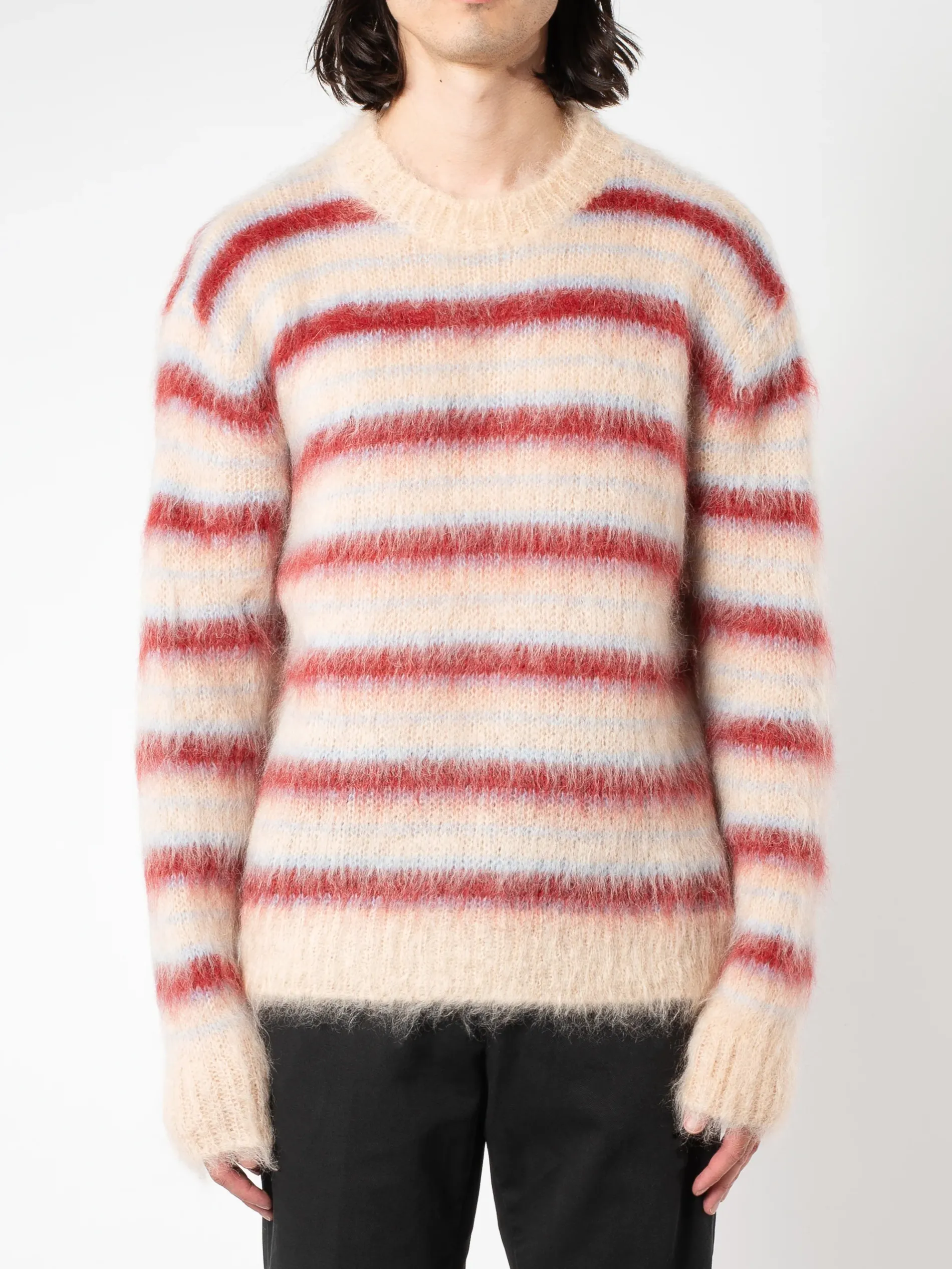 Marni long-sleeved crewneck sweater in brushed mohair with multicolour stripes.