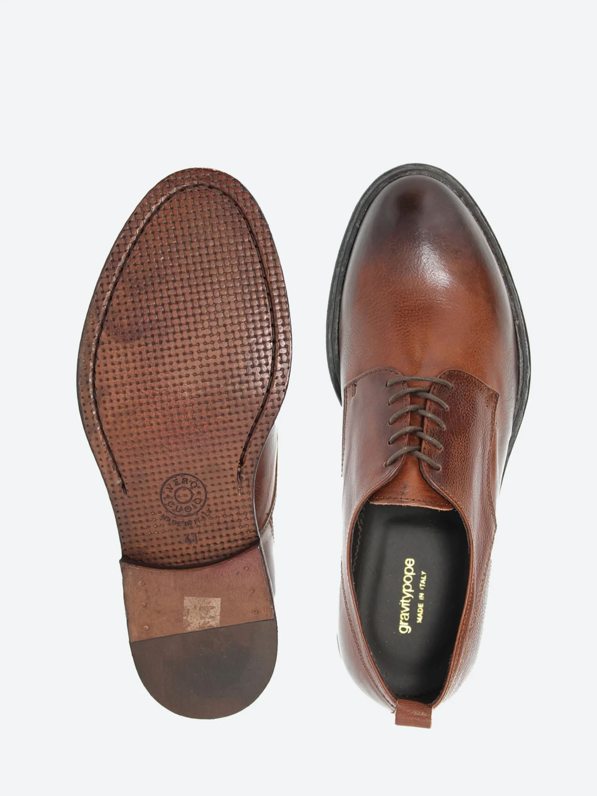 gravitypope Matteo lace-up derby in brown leather. Stitched sole and handcrafted in Italy.