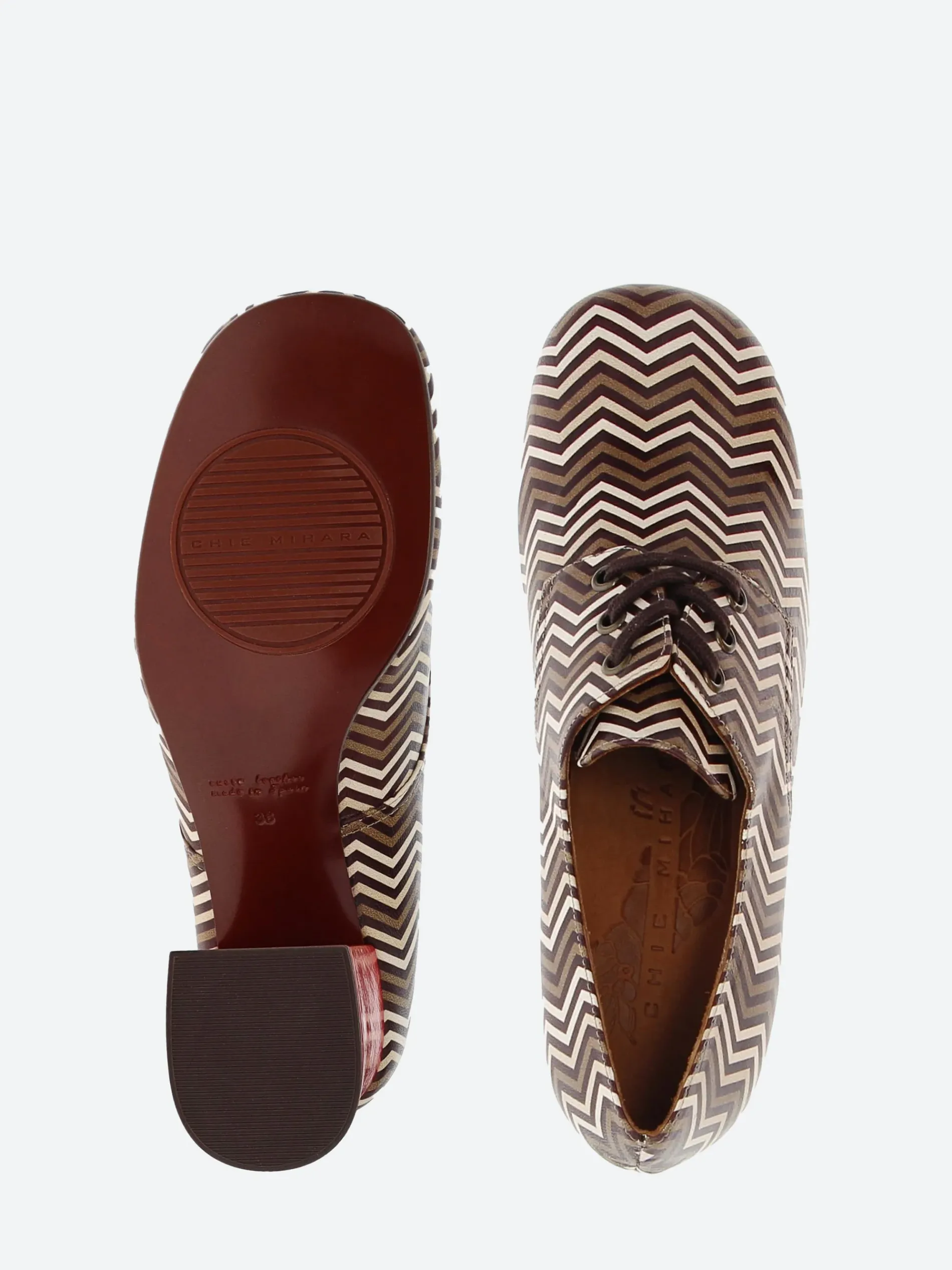 Chie Mihara Meriete slip-on heeled shoe, crafted from soft leather in a geometric print with a woven effect.