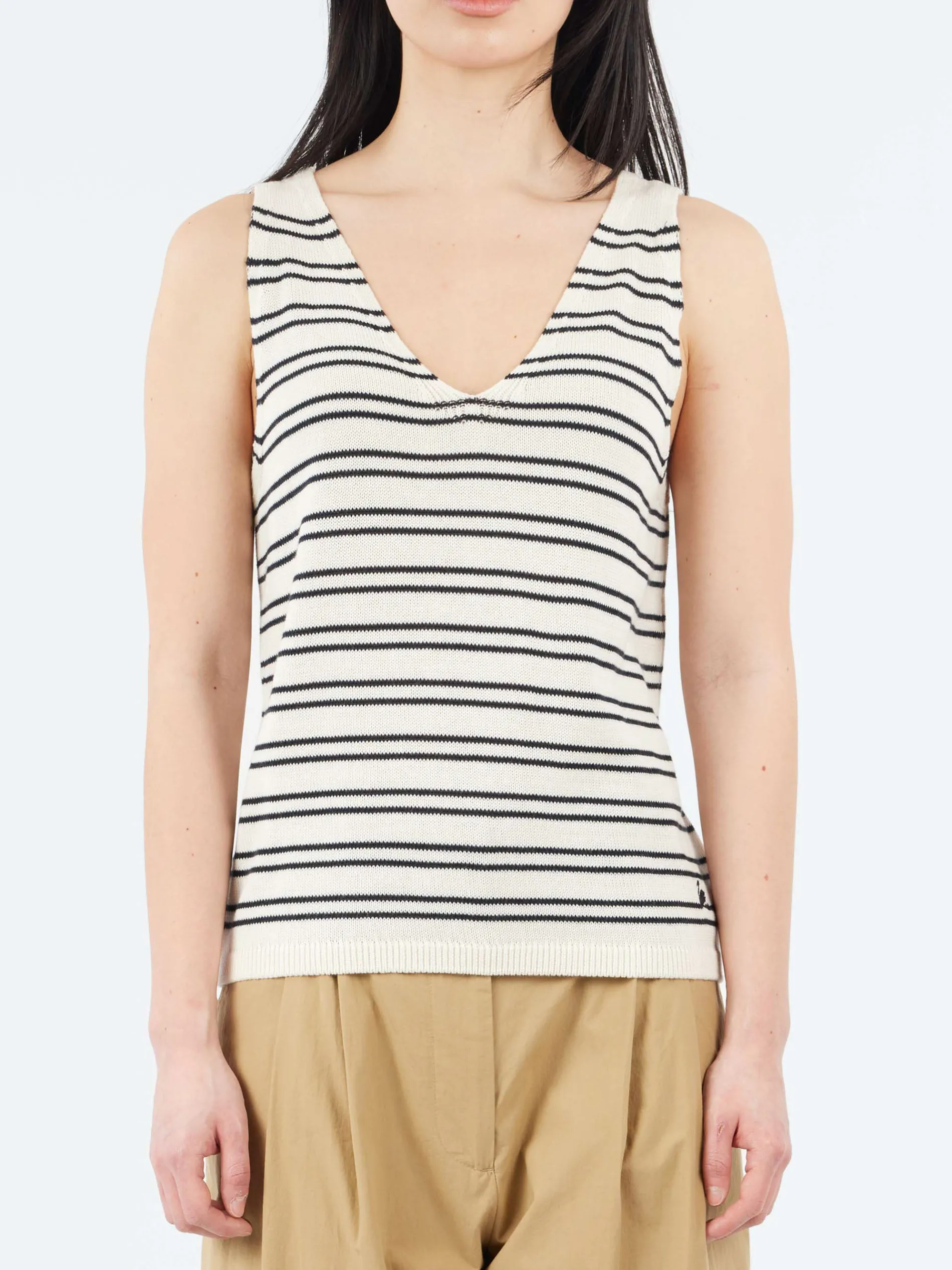 Reinventing the tank top: what once was commonly known as underwear is indispensable today as soon as the summer heat hits. Thanks to Merz b. Schwanen’s sustainably knitted organic cotton fabric, it’s breathable to keep you cool everywhere you go. Moreover, the material is entirely plant-based, meaning every component is crafted and derived from renewable resources.
