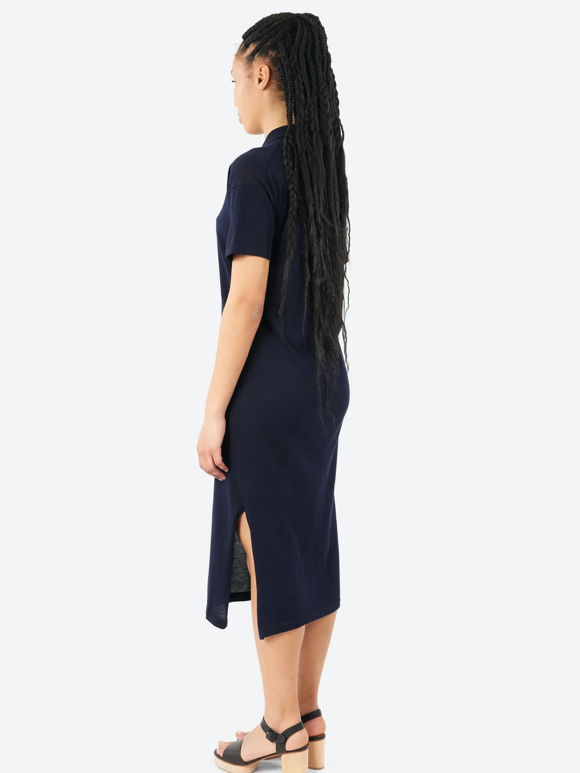 The Polo Dress by MJ Watson is a refined midi dress crafted in Italy from Pima cotton. Featuring short sleeves and a relaxed silhouette, it offers effortless elegance for a variety of occasions. Its clean design and premium fabric make it a versatile piece that pairs beautifully with both casual and elevated accessories.
