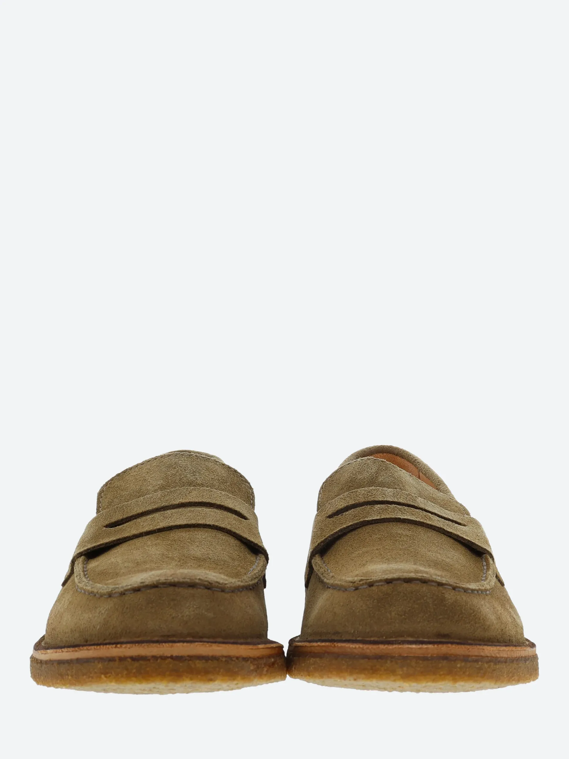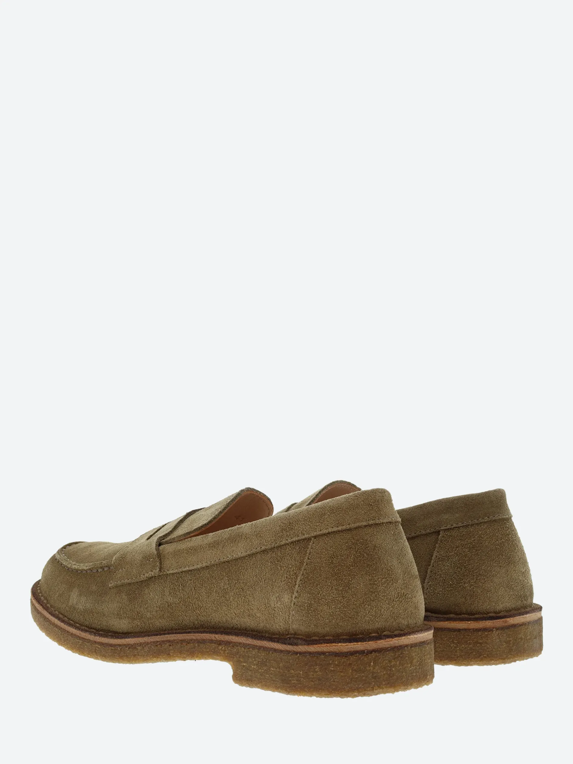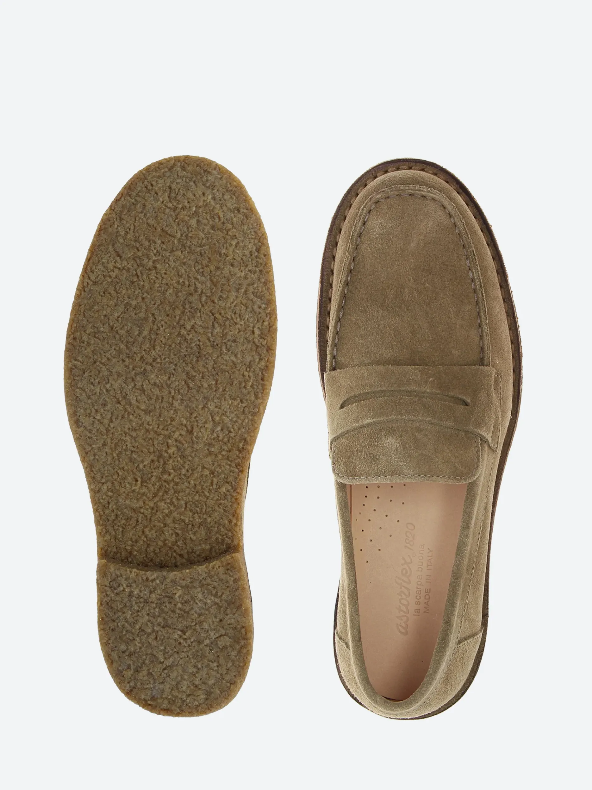 Astorflex Mokaflex loafer handcrafted with suede and finished with the brand’s signature external stitch “ideal” construction method.