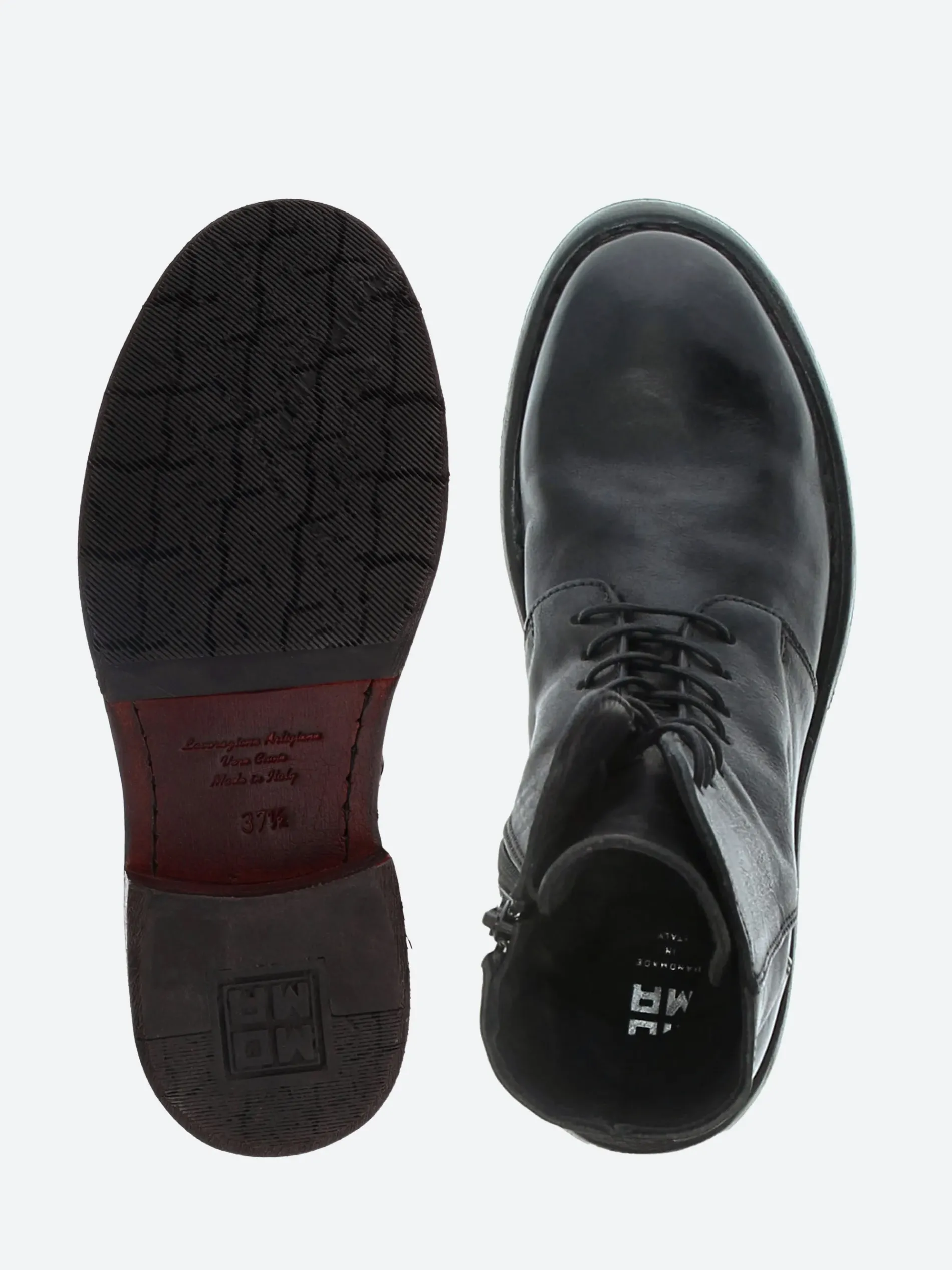 MOMA lace-up boot in vintage-effect leather and an inside zip closure for easy on and off. Handmade in Italy with a non-slip rubber sole insert.