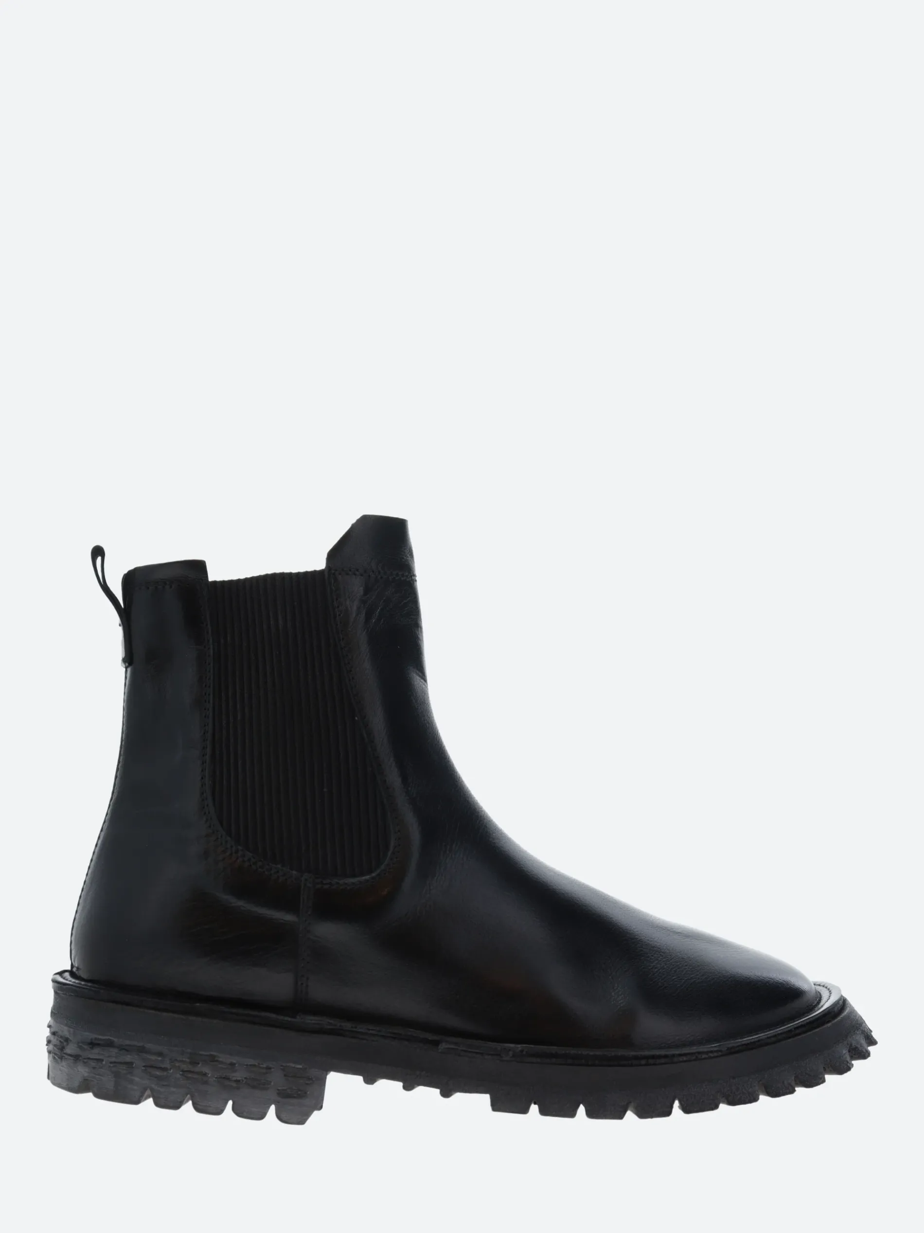 Moma Chelsea boots in smooth grain calf leather with a heightened lug sole.