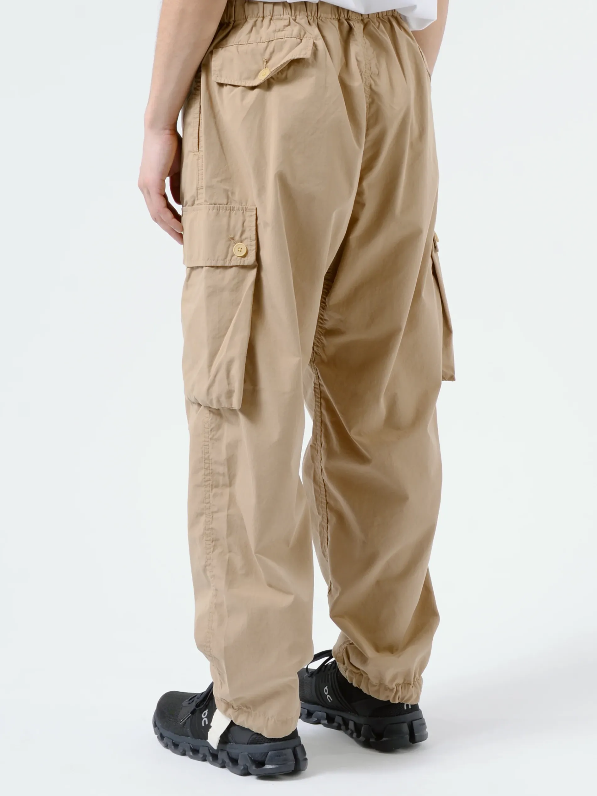 Nanamica cargo pants uses broadcloth made of covering core yarn with a polyester core wrapped in cotton. The pocket design is based on the military cargo pants from the 50s.