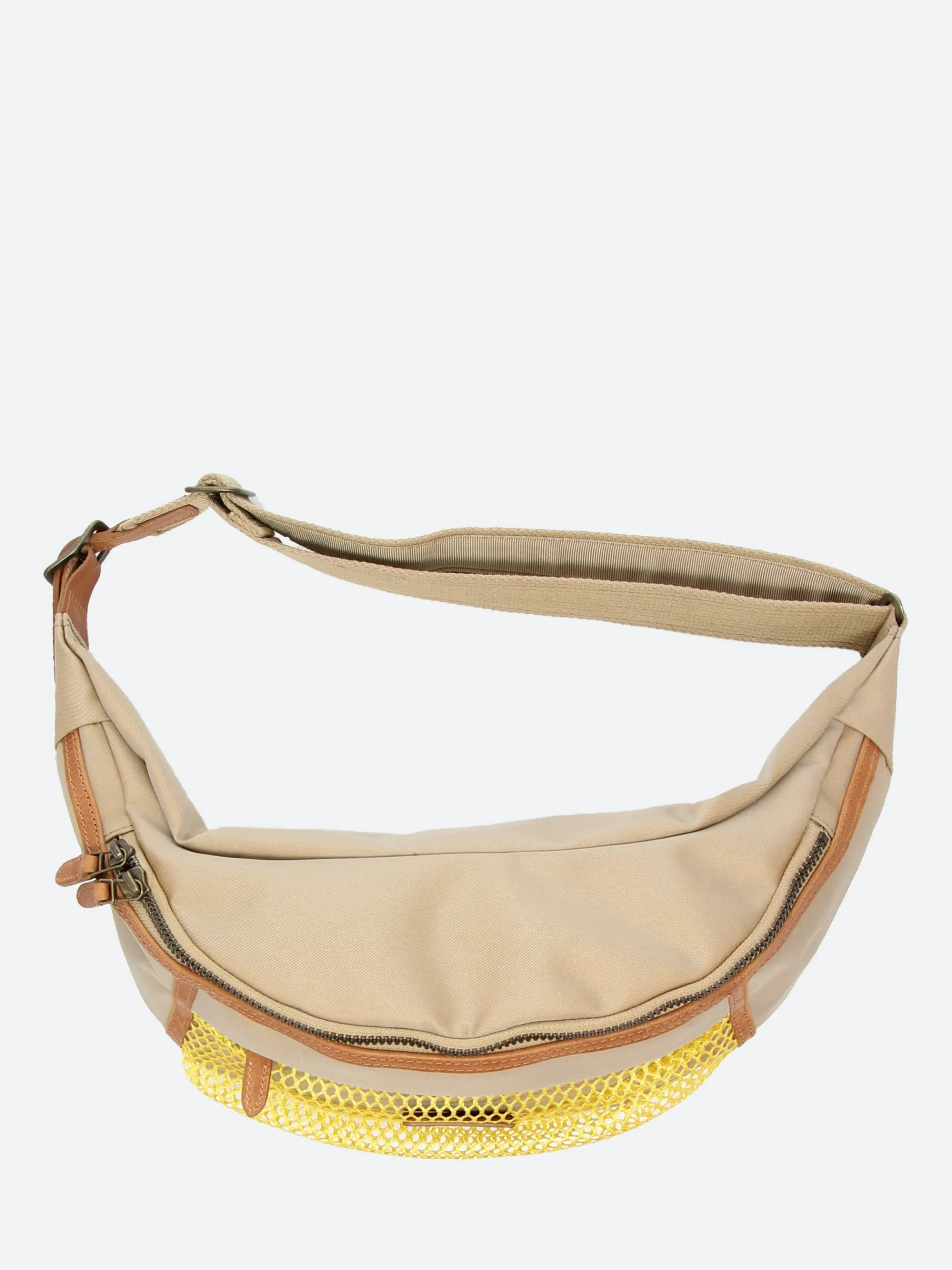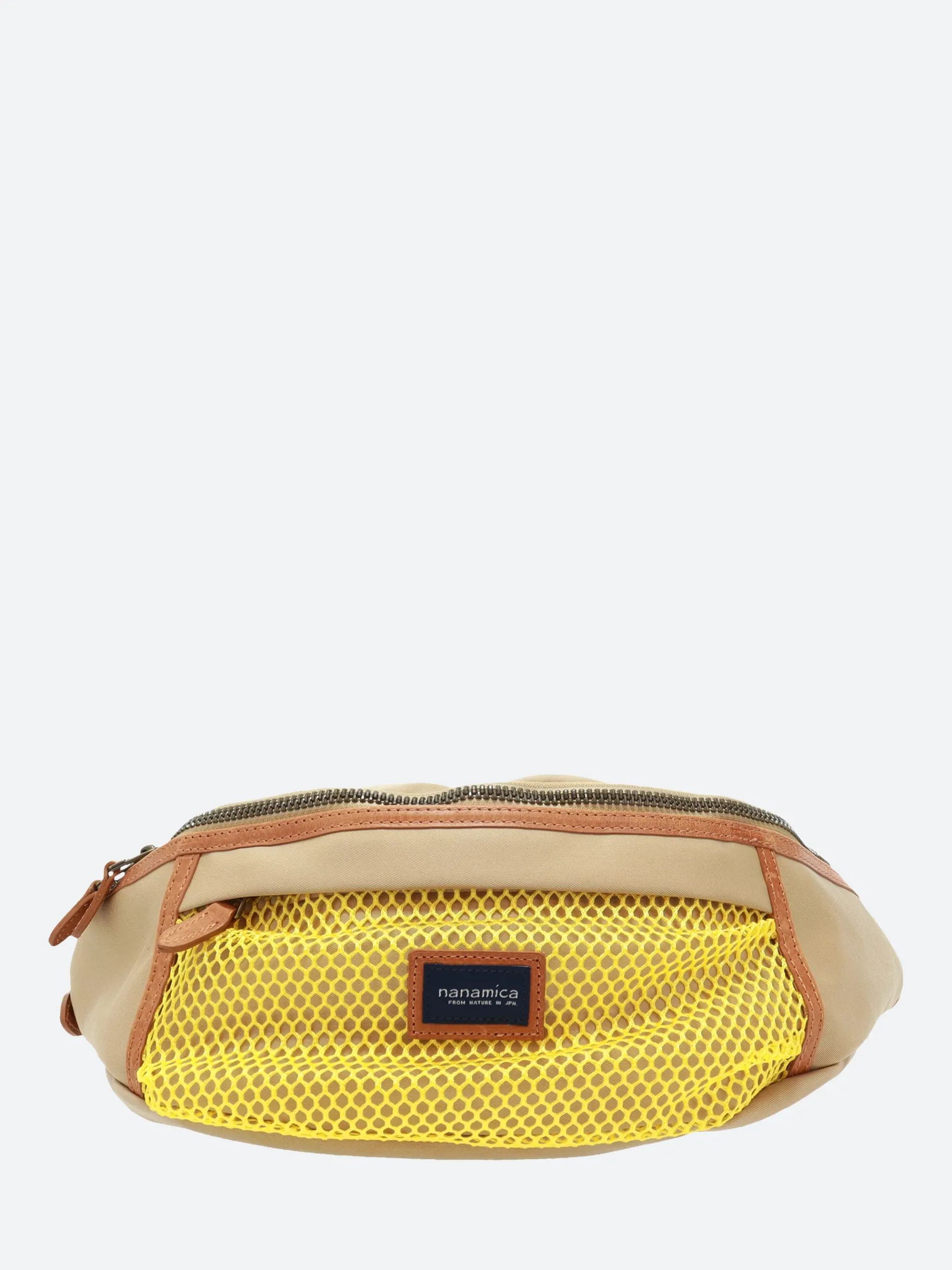A belt bag that incorporates the design of a hunting game bag. Made of a durable water-repellent cotton twill material, bonded with a waterproof breathable film and nylon, creating an original three-layer fabric.
