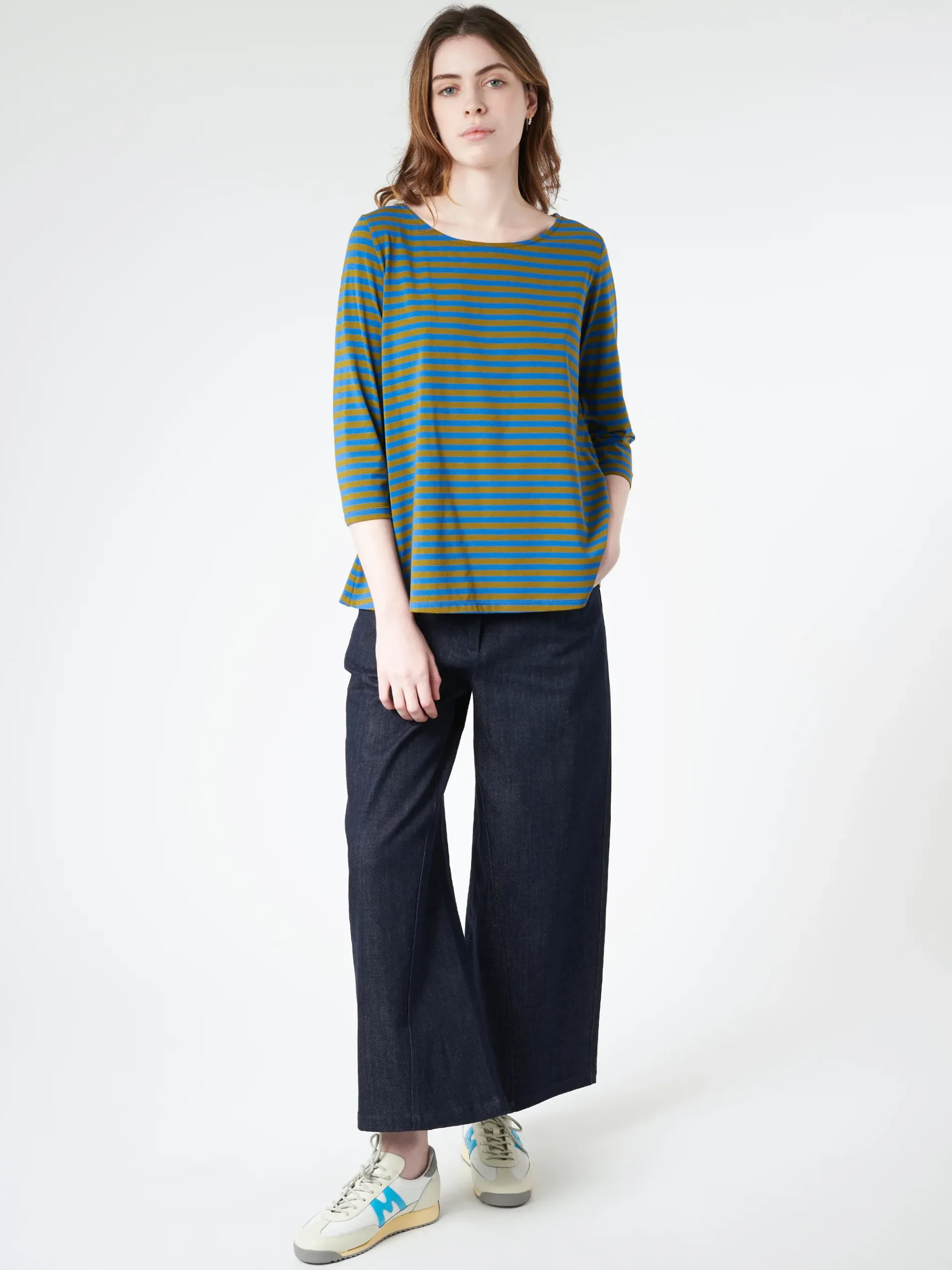Basic striped crew-neck t-shirt with dropped shoulders and A-shape. Shallow neckline and comfortable fit.