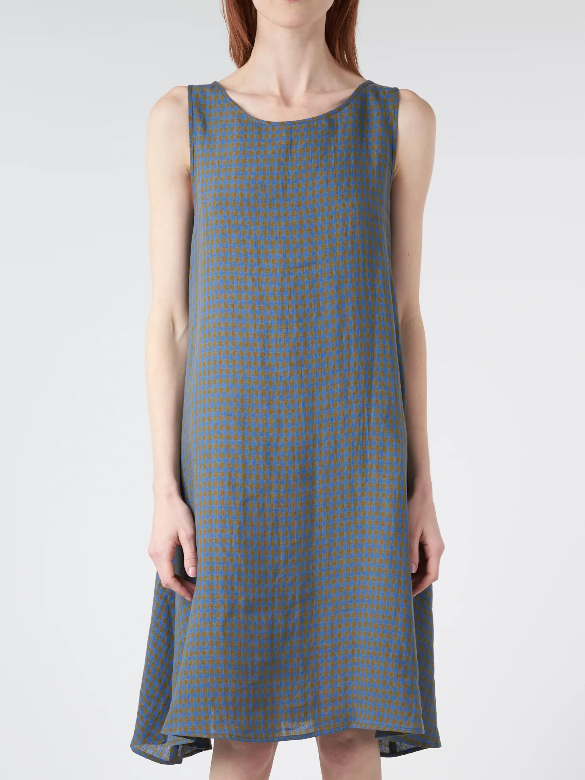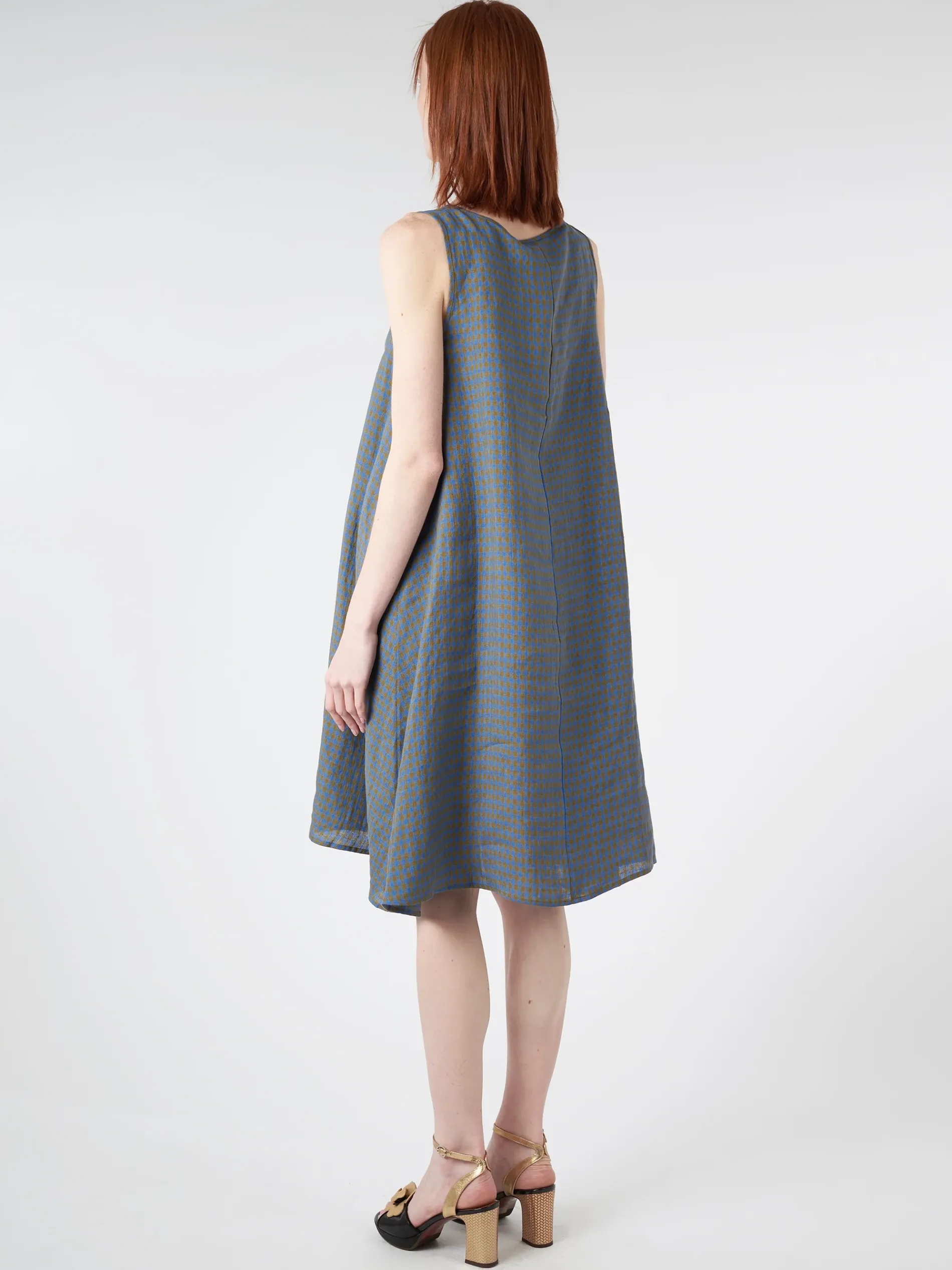 Neirami flared dress with a subtle checker pattern throughout. The dress has flared lines and follow the body without ever clinging to the waist and hips.