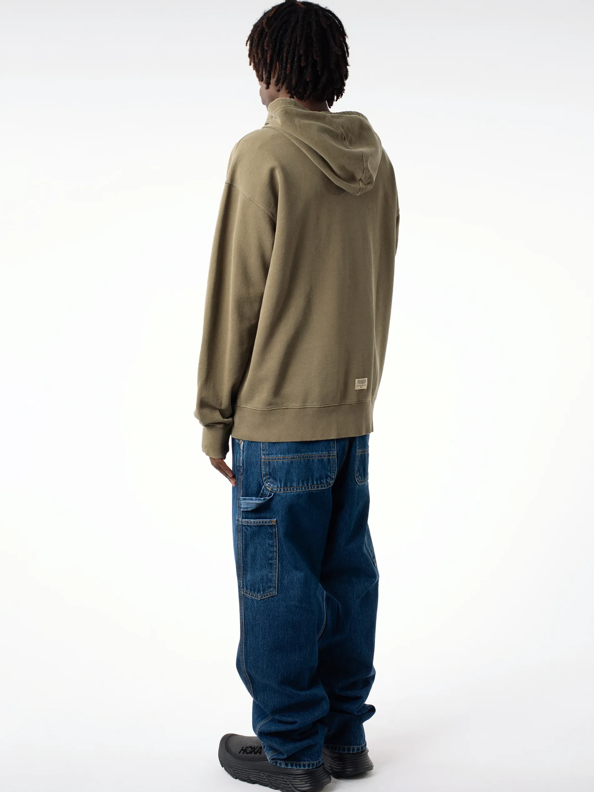 The Army Gym Hoodie features a full flat-lock stitch construction originally designed to add extra strength at the seams when worn during contact sports. Other details include full zip through, two front pockets, a drawstring hood and a subtle embroidered broad arrow sleeve detail.