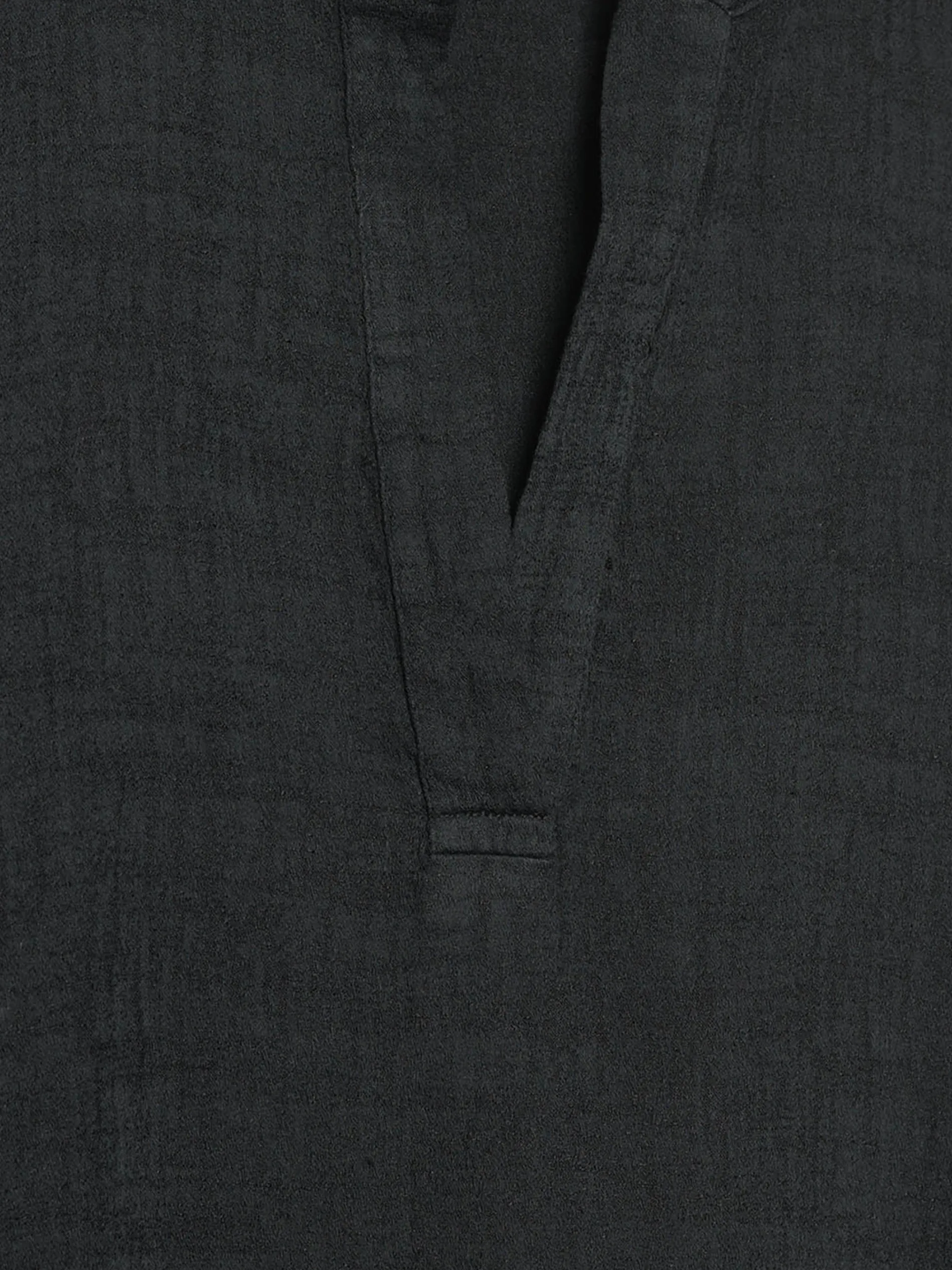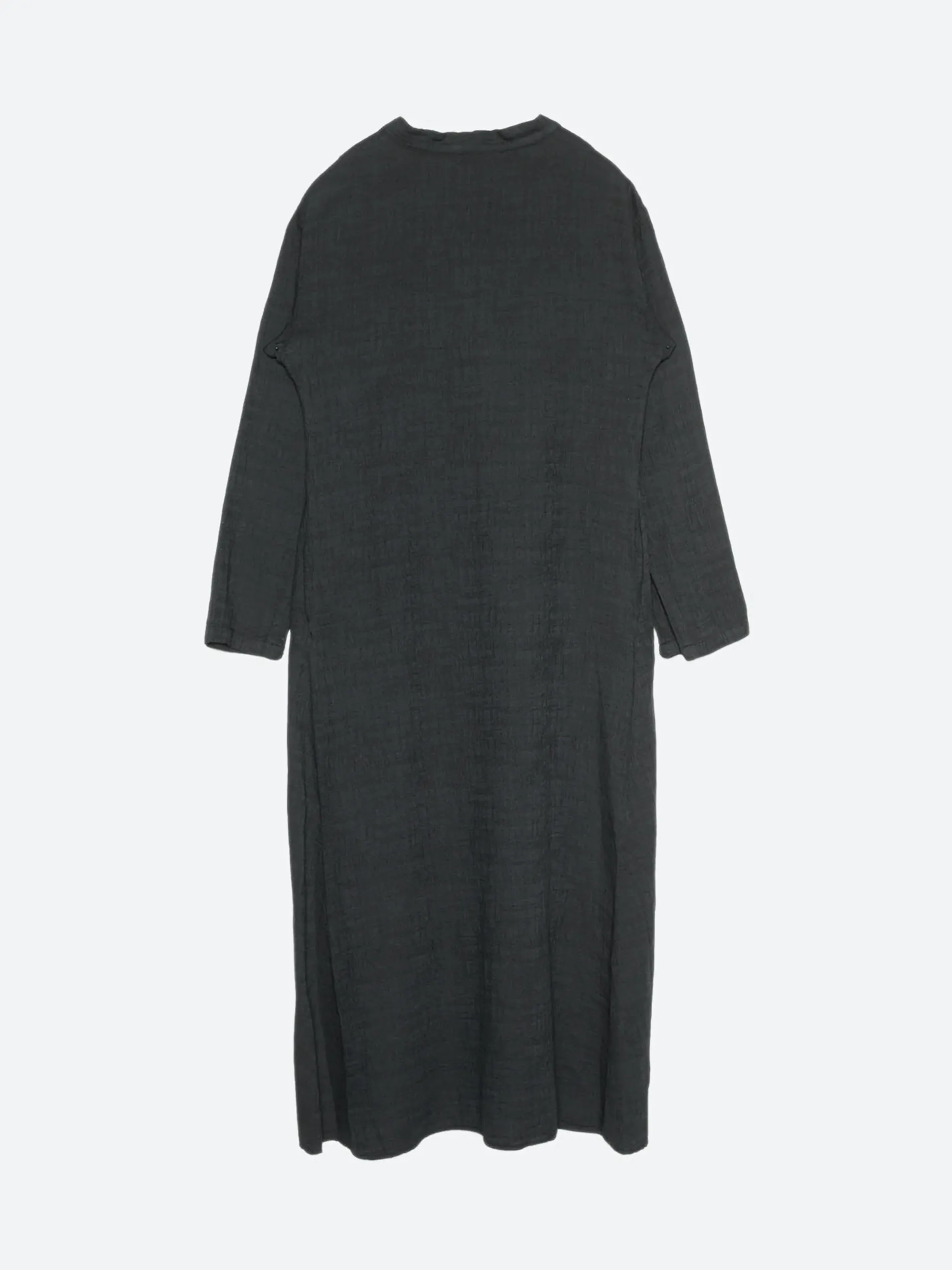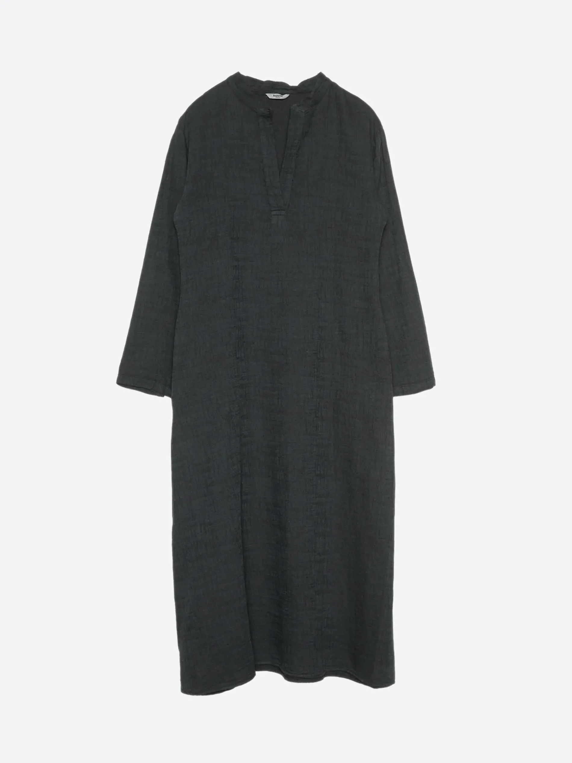 Minimal stand up collar kaftan-like long sleeve dress. Made in a super light jacquard cotton linen.
