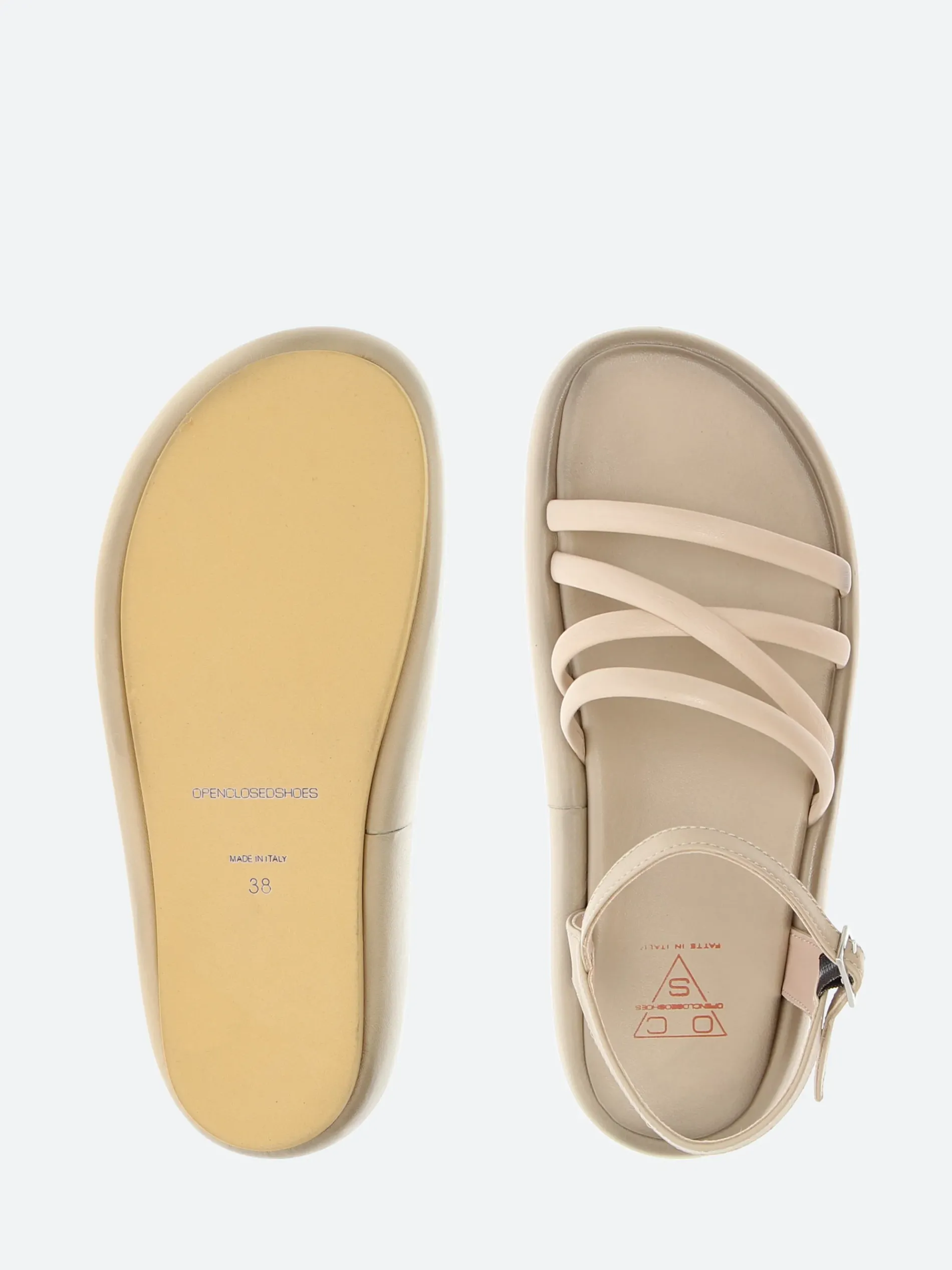 Open Closed Barbara sandals with thin straps at the vamp and a y-strap with buckle closure ensures a secure fit, while the leather wrapped platform adds a statement-making touch.