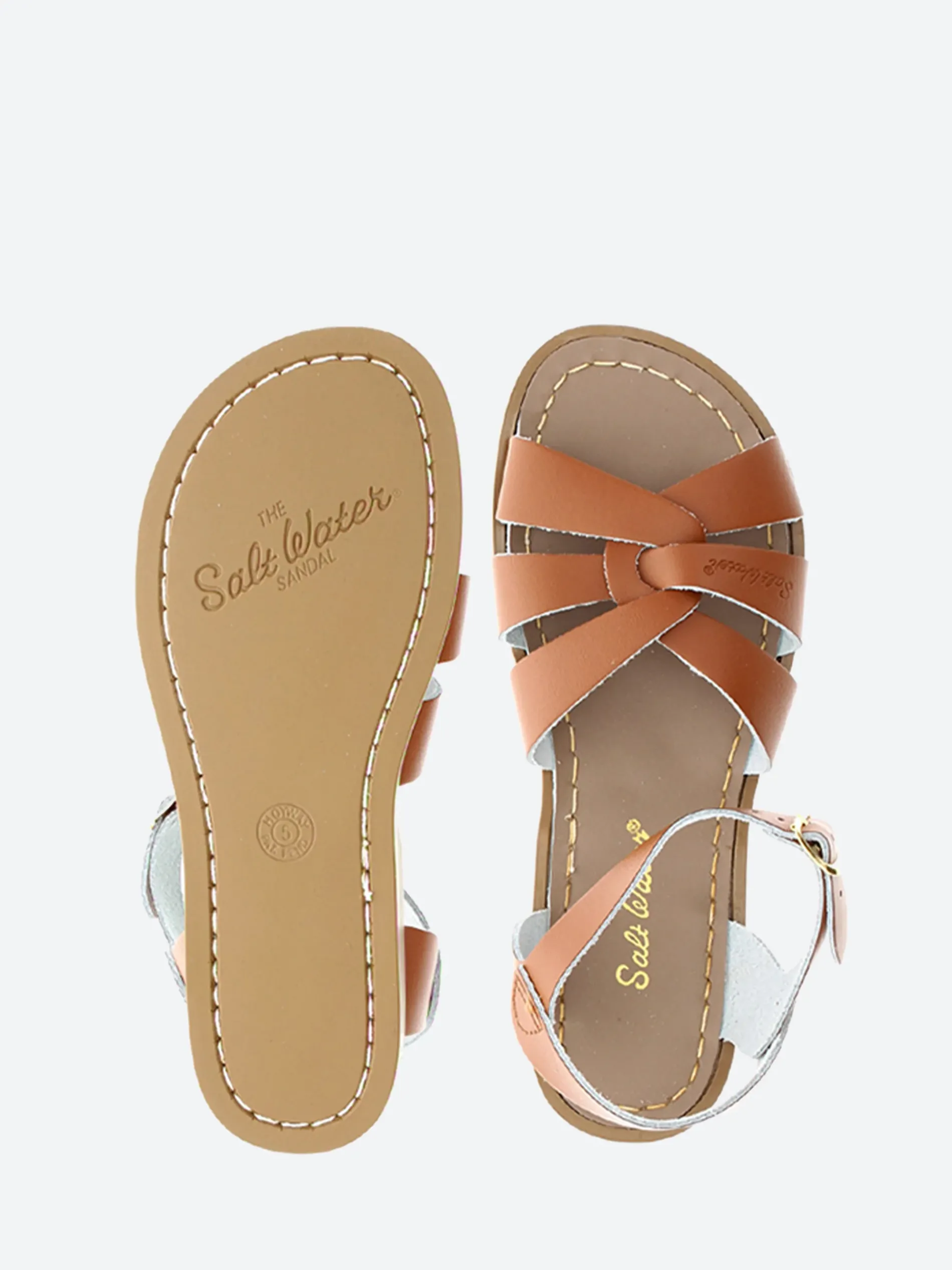 The Salt Water Original sandal, debuting in 1944, is defined by its non-slip, molded rubber sole and scuff-resistant, water-friendly genuine leather upper.