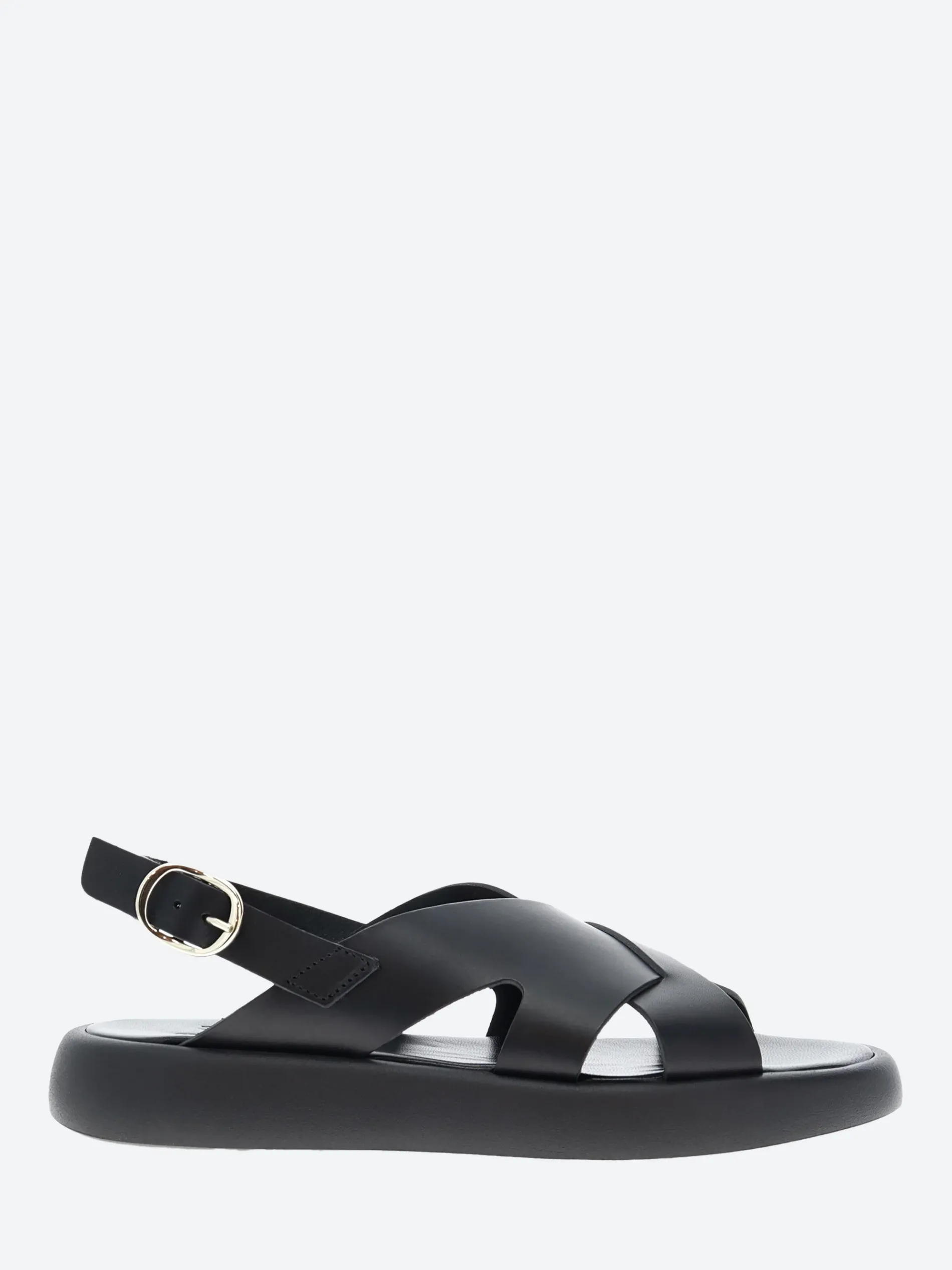 - Slingback strap with buckle closure