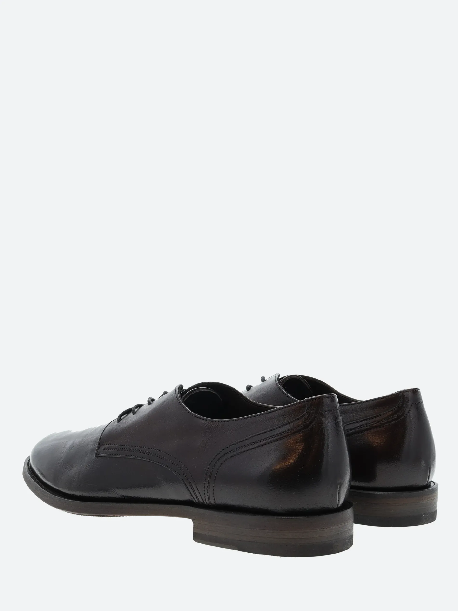 A simple lace-up derby from Pantanetti made from beautiful nappa leather. Handcrafted in Italy and extremely comfortable due to the customized leather sole with rubber injection.
