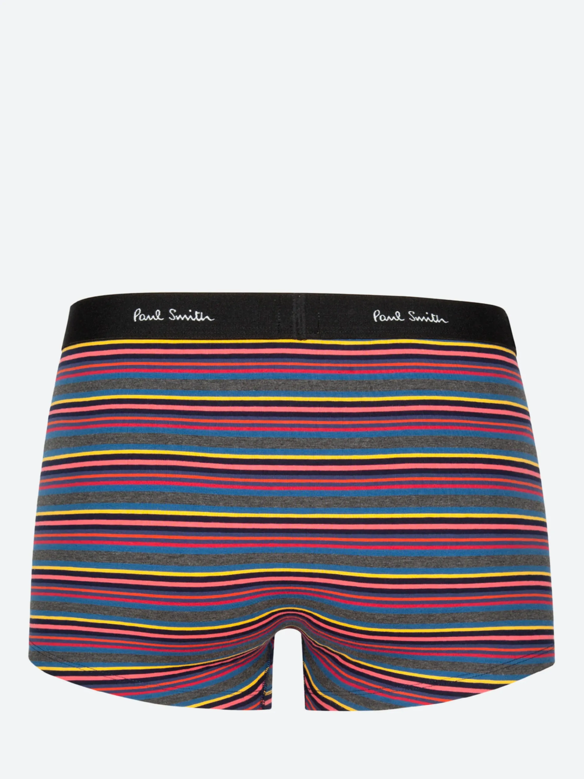 Men’s low-rise boxer briefs with a grey and varied multi-stripe pattern throughout.