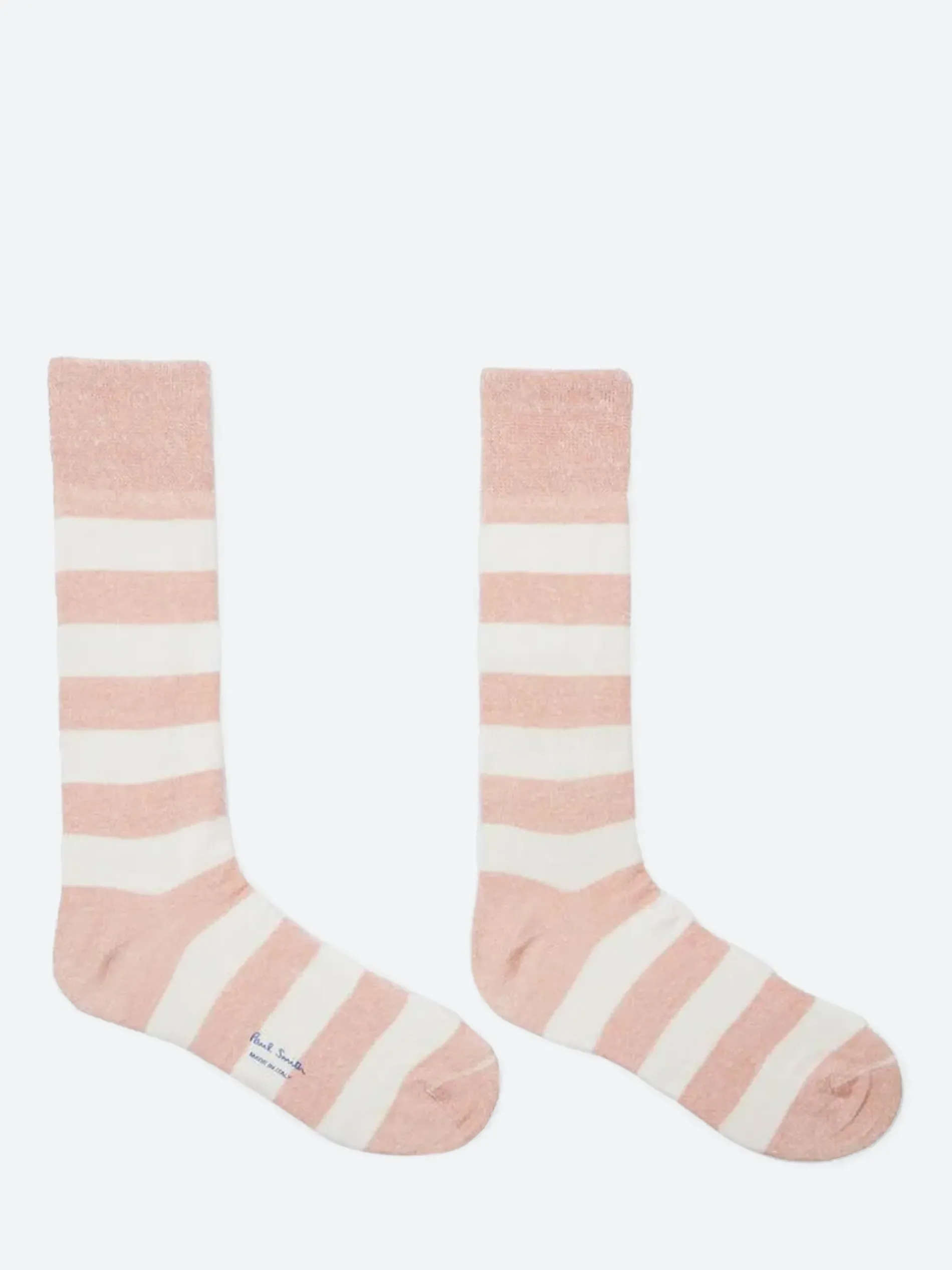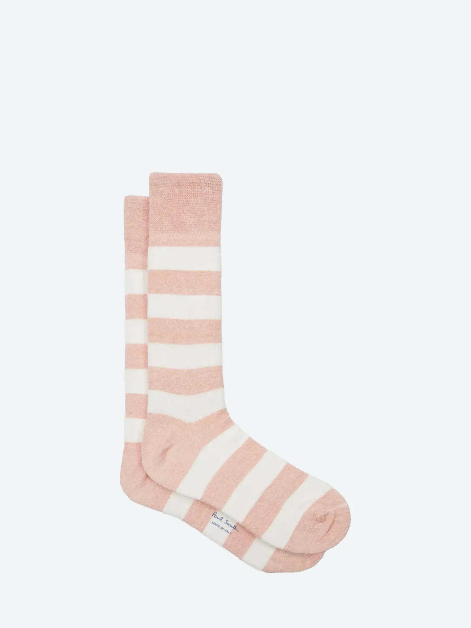 These striped socks are crafted in a smooth linen material, with a ribbed cuff, and a printed logo on the sole. Wear these socks with any pairs of shoes to add some fun to your attire.