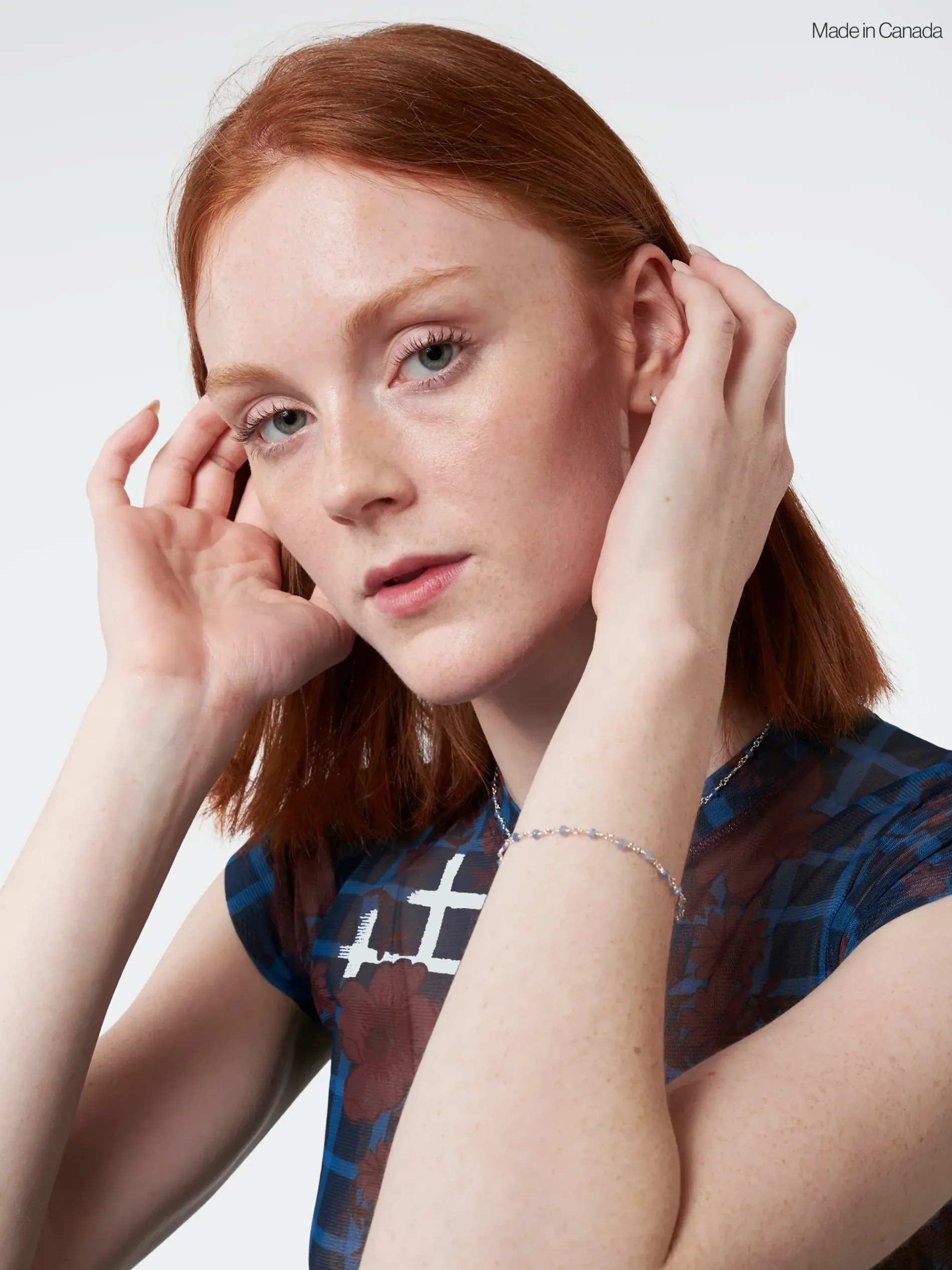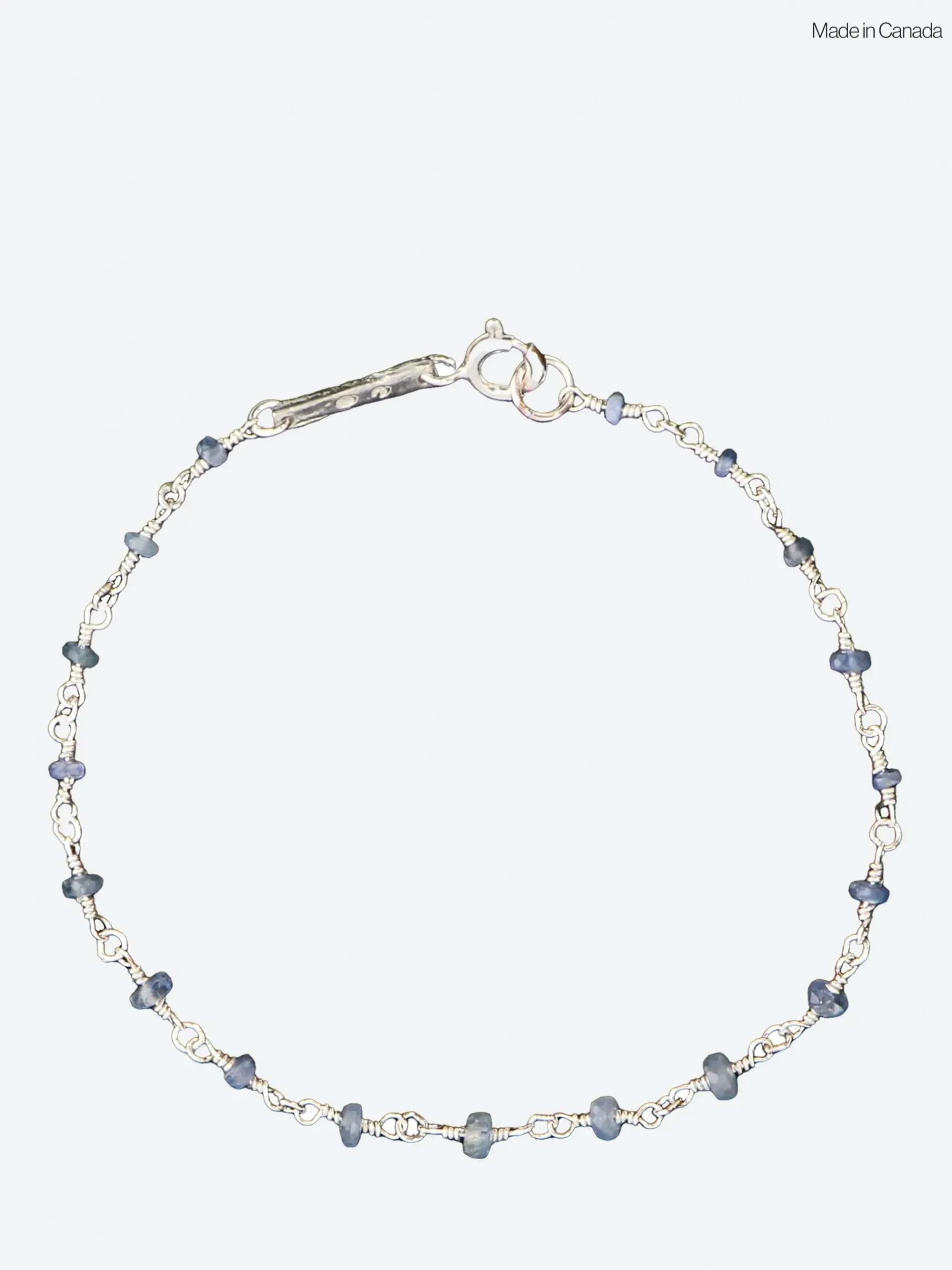 Cable chain bracelet handmade in British Columbia using 925 silver with beaded gem accents.