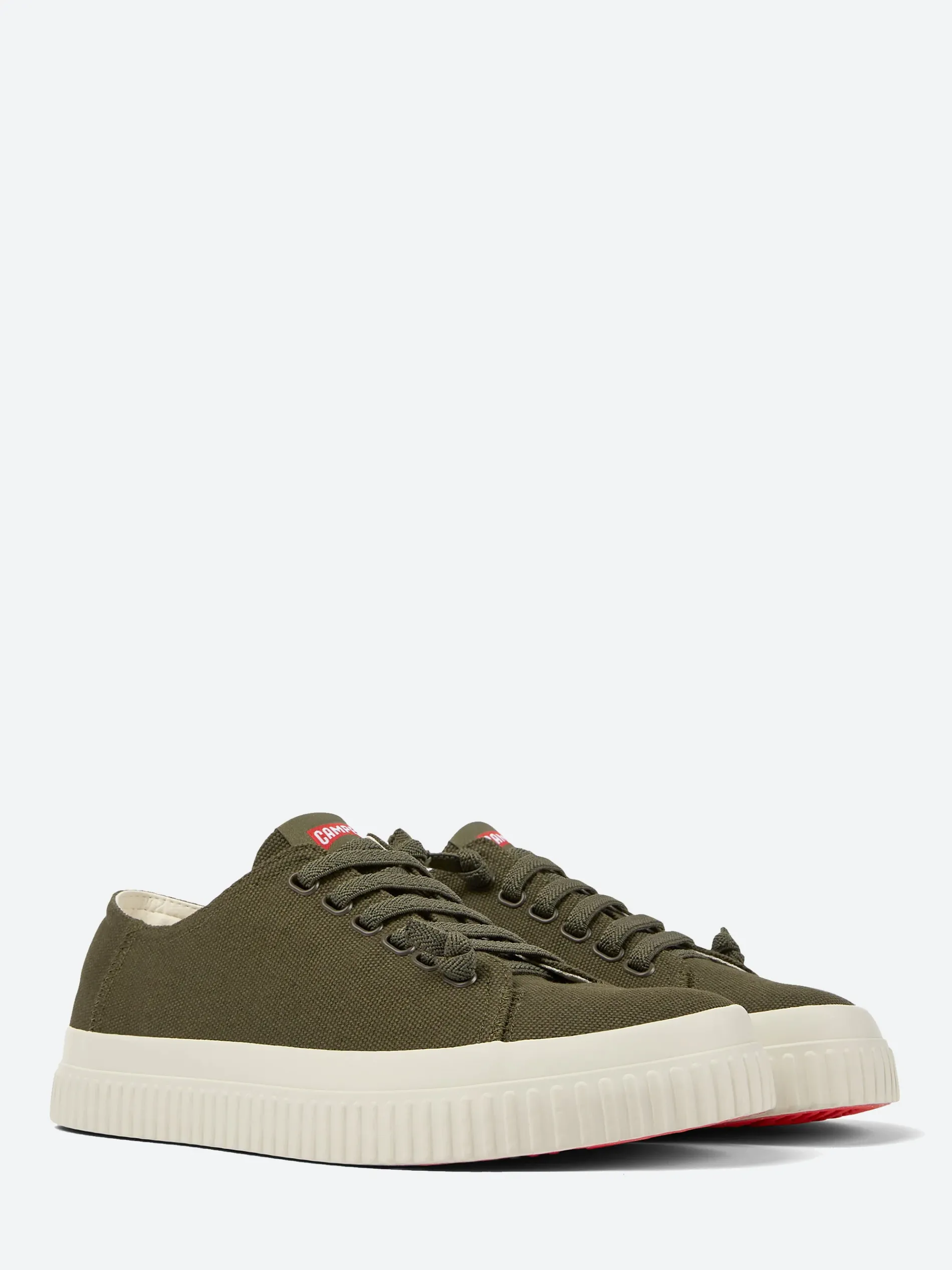 Camper Peu Roda recycled cotton men’s sneakers with OrthoLite® Recycled™ footbeds and rubber outsoles.