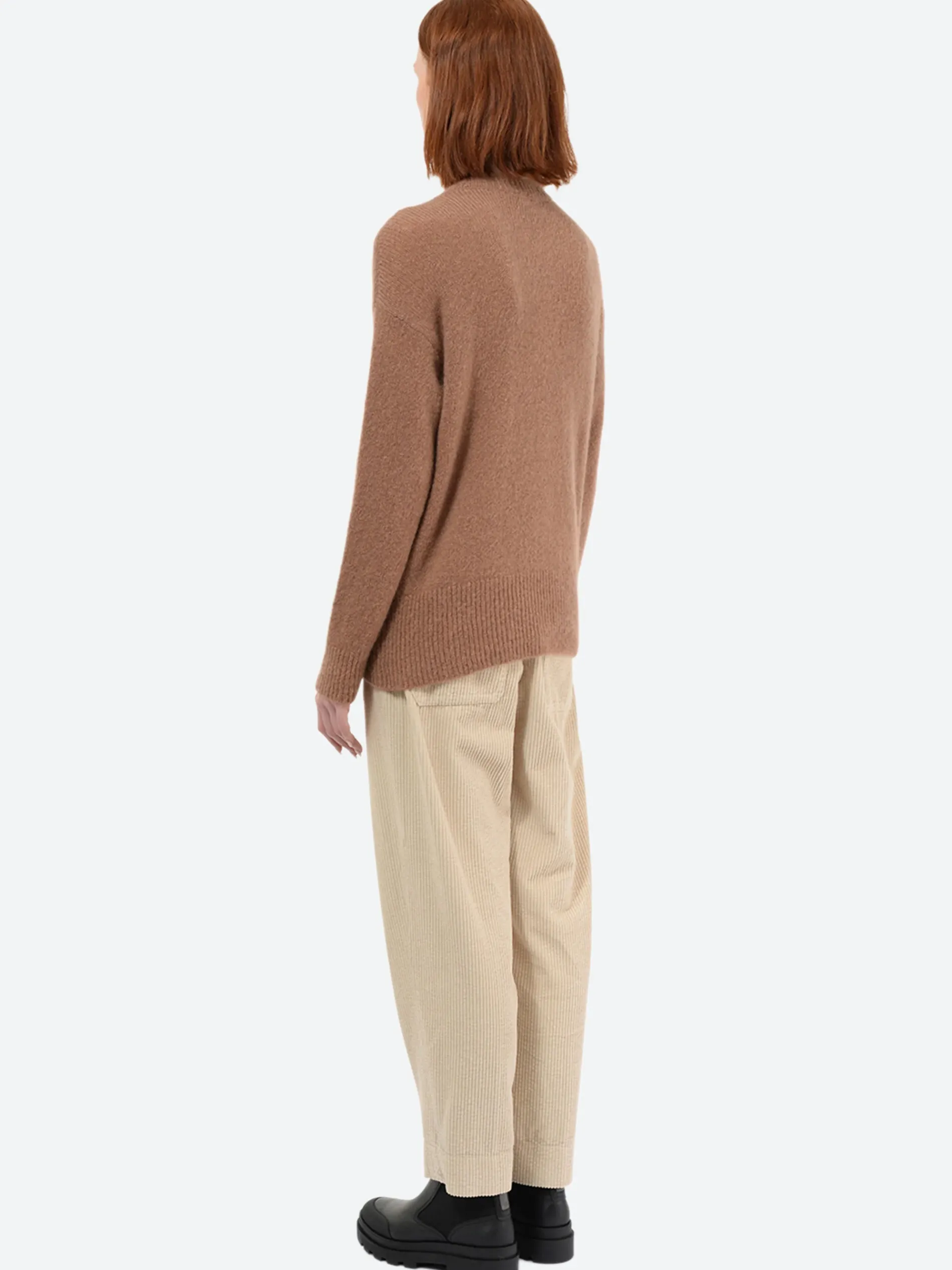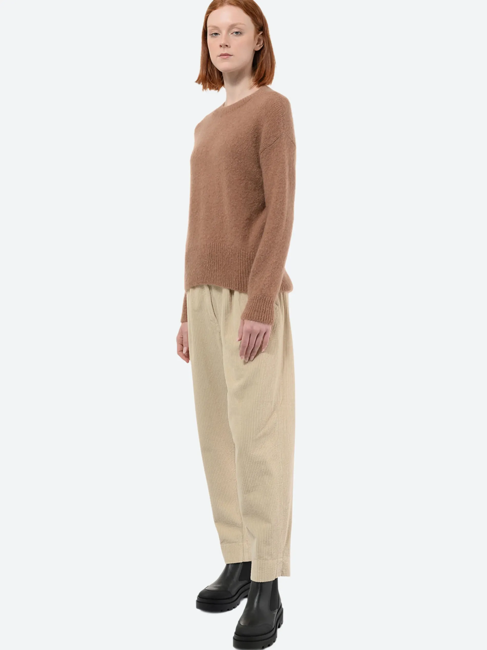 Pomandere crew neck in mohair, stockinette stitch t.3. Slightly dropped shoulders, rib knitted at the bottom of the bust.