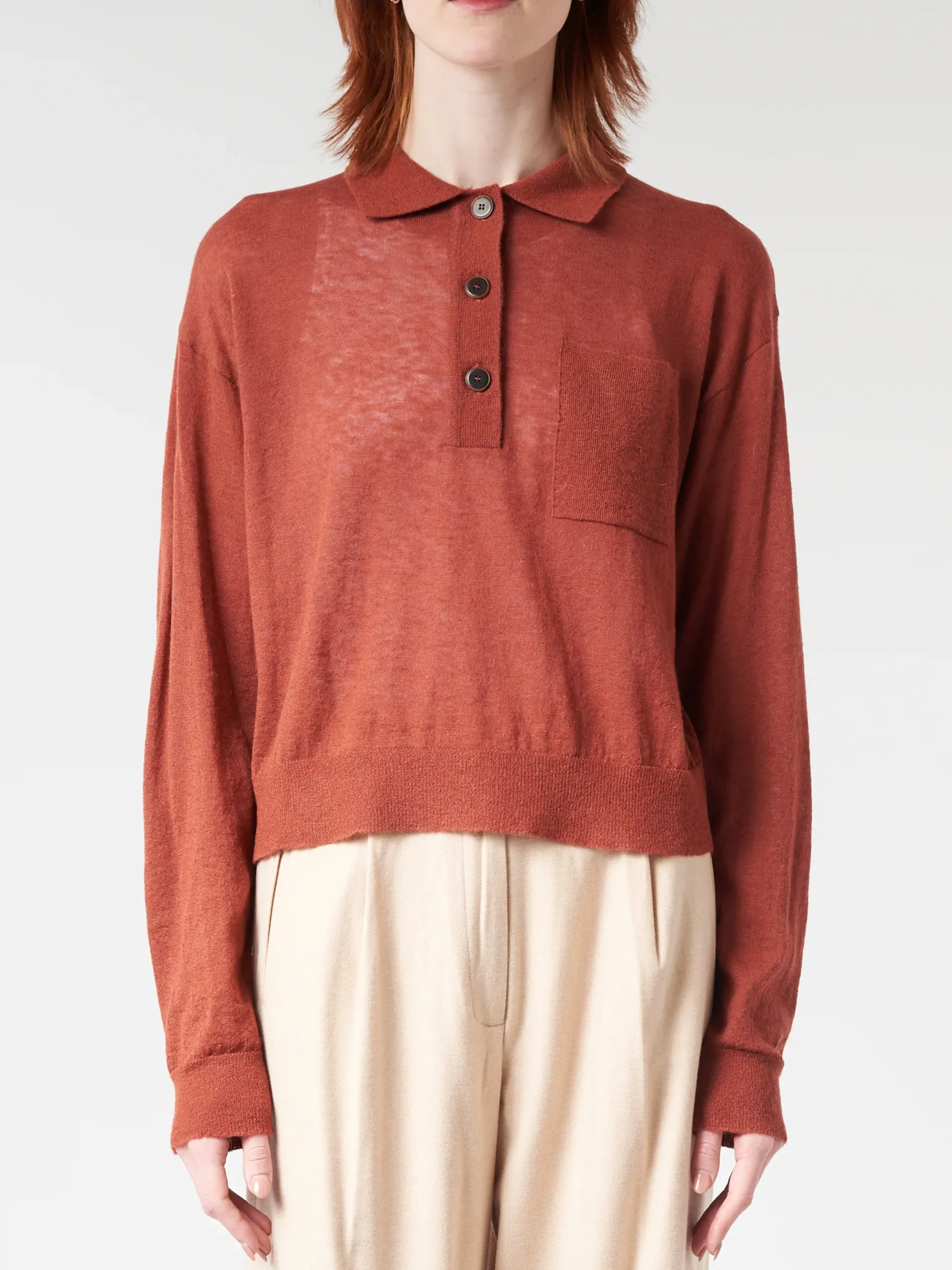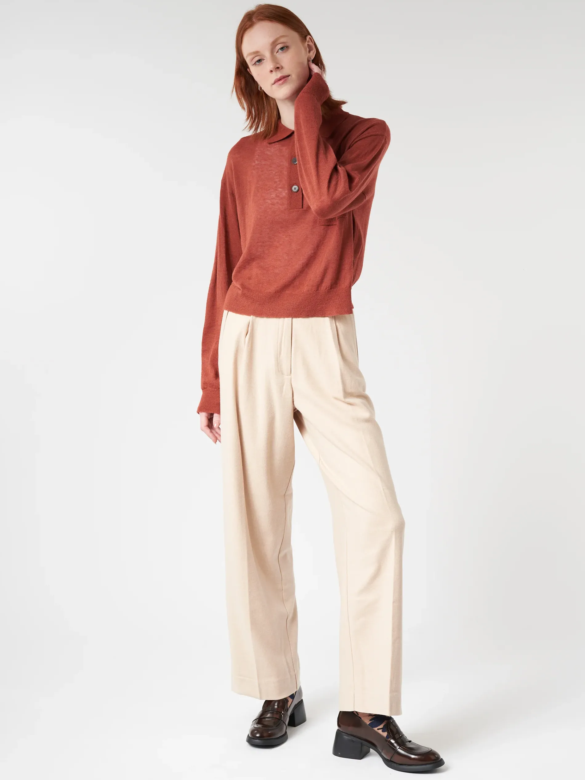 Long sleeved knitted polo shirt in extra fine wool and alpaca.